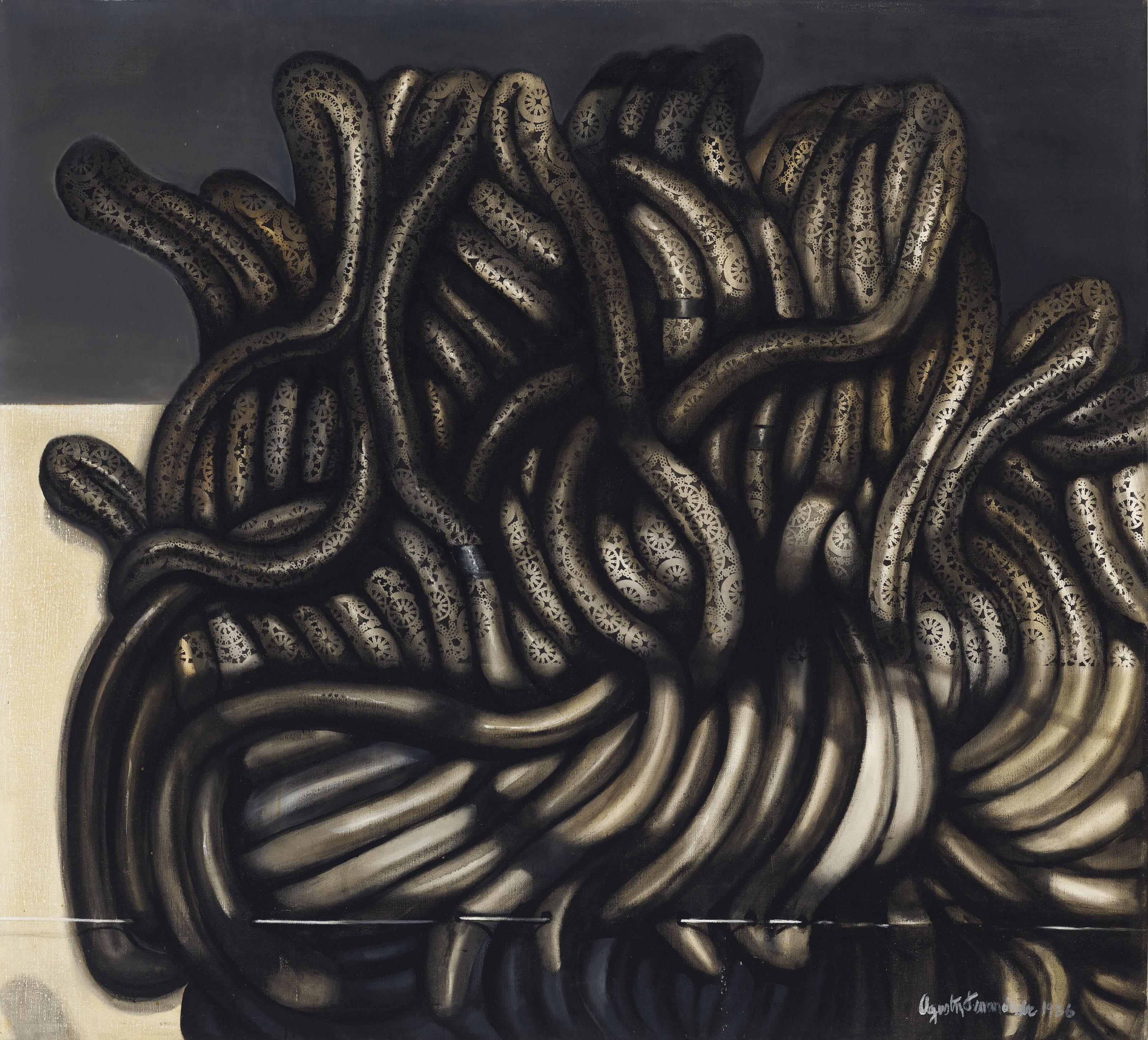 signed and dated 'Agustín Fernández, 1986' signed and dated again, and titled 'Agustín Fernández, 1986, Stems' (on the reverse)