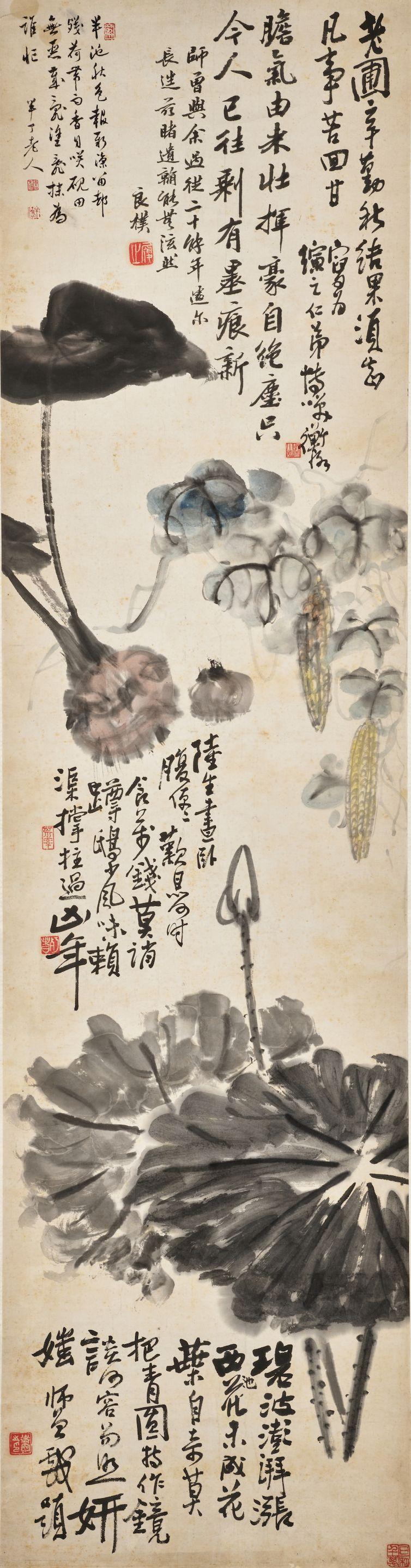 Die Arbeit Lotus, Taro and Loofah von Chen Shizeng kam im Dezember 2021 bei Bonhams in Hong Kong zur Auktion. Sie erzielte dabei einen Preis von HKD 177.500,00 (€ 20.105,58) und übertraf damit das obere Ende der Schätzpreisspanne um 48%. Freilich wurden Arbeiten von Chen Shizeng auch schon für ein Vielfaches dieses Preises versteigert – das bisher höchste Ergebnis erzielte nach unseren Aufzeichnungen die Arbeit Flowers im September 2015 mit einem Auktionsergebnis von USD 137.500,00 (€ 123.185,81).