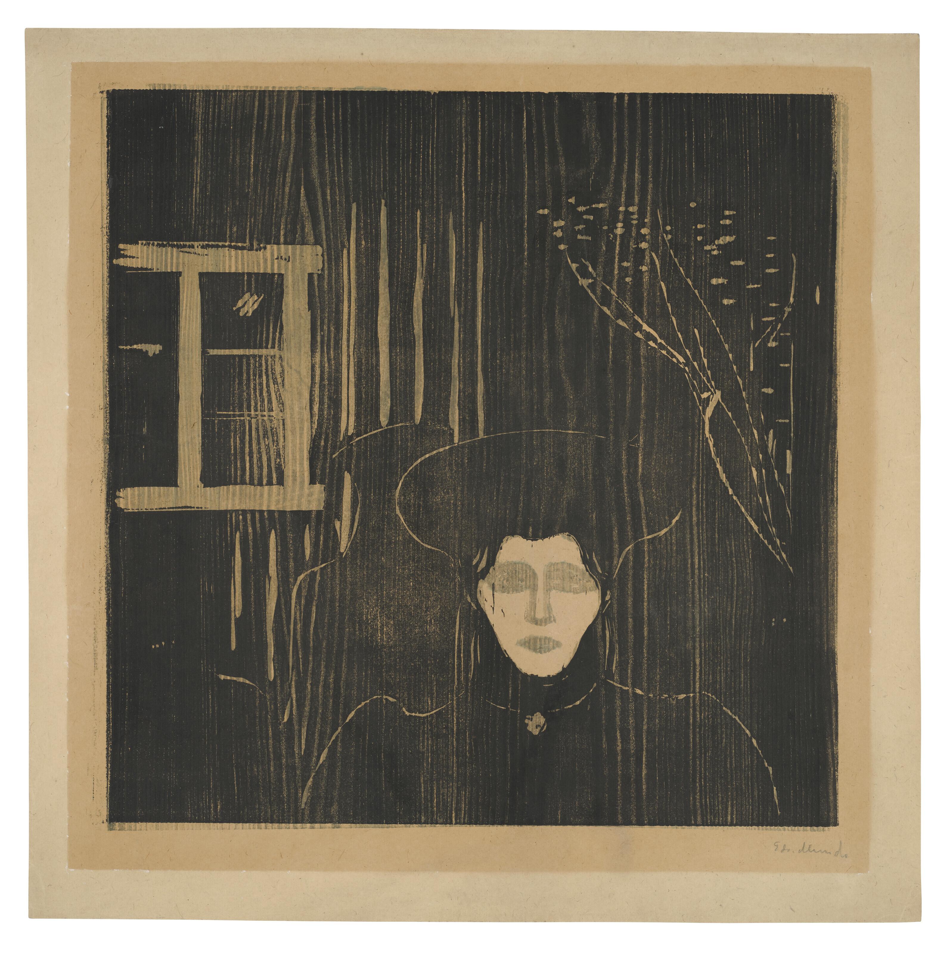 EDVARD MUNCH (1863-1944) Moonlight II woodcut printed in black and grey from two blocks, 1902, on heavy buff wove paper, a very good impression of this rare subject, Woll's variant I (of II), signed in pencil, printed by M. W. Lassally, Berlin Image 465 x 464 mm. Sheet 565 x 568 mm.