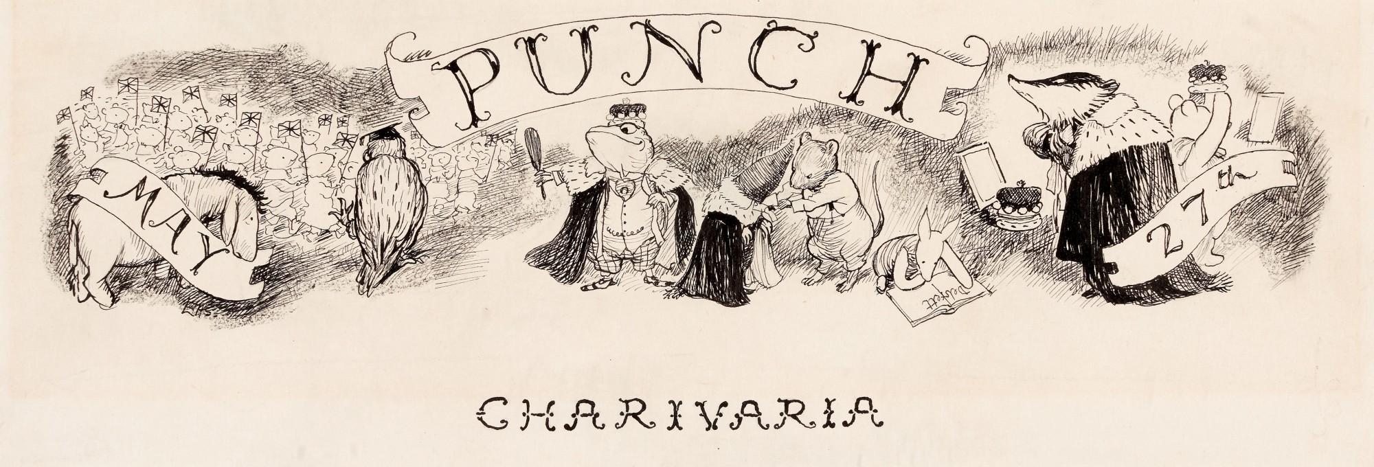 Eeyore, Owl, Toad, Ratty, Piglet, Badger, and Winnie-the-Pooh preparing for the Coronation of Queen Elizabeth II