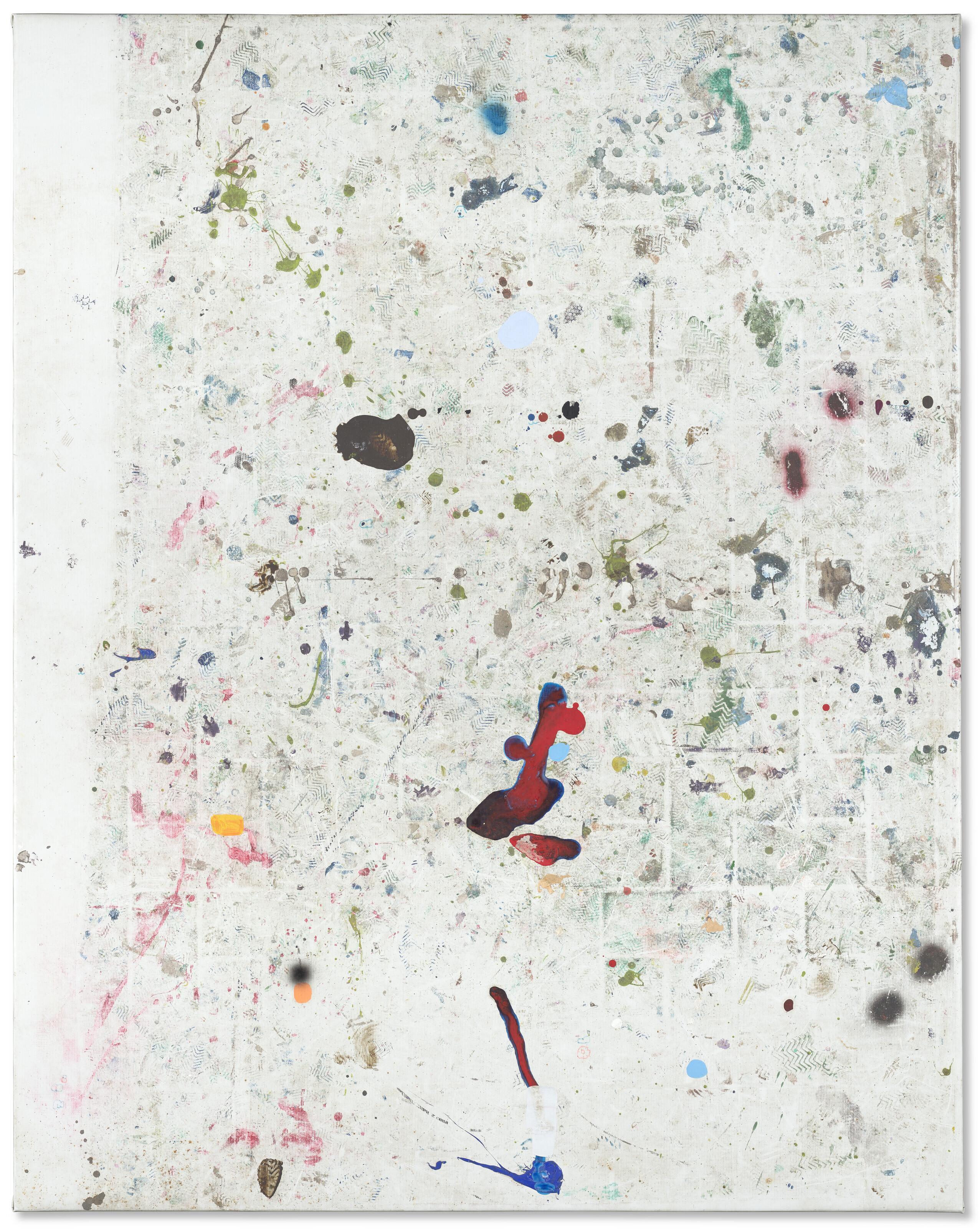 Federico Herrero (né en 1978) Cuadricula signé de l’initial et daté 'H 2013' (au dos) acrylique, peinture aérosol et empreintes de chaussure sur toile cirée découpée 205 x 162 cm. Réalisé en 2013. signed with the initial and dated 'H 2013' (on the reverse) acrylic, spray paint and shoe prints on cut wax canvas 80 3 ⁄ 4 x 63 3 ⁄ 4 in. Executed in 2013.