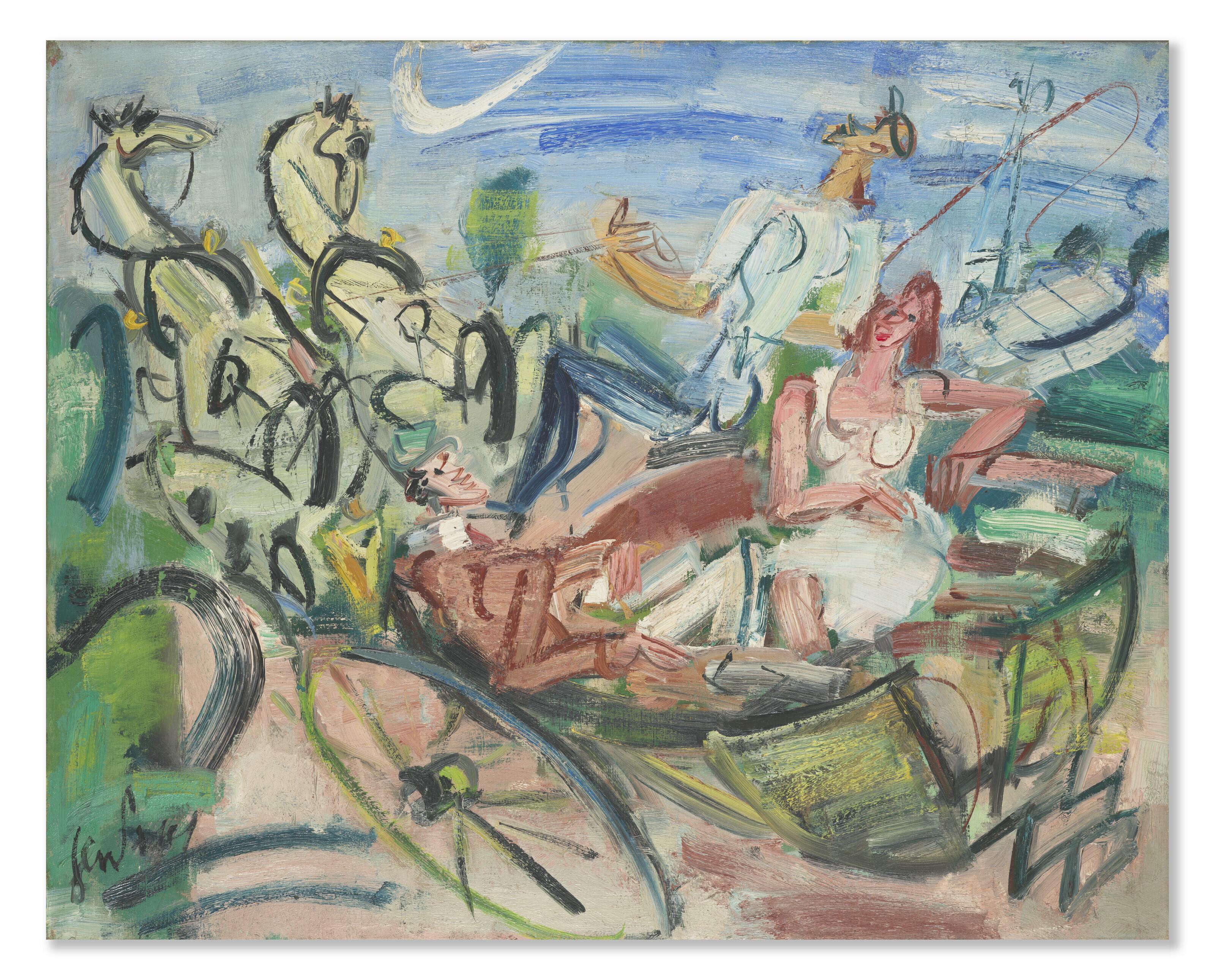 Gen Paul (1895-1975) Couple dans une calèche en bord de mer signé 'Gen Paul' (en bas à gauche); signé 'GEN. PAUL' (au dos) huile sur toile 64.8 x 81 cm. Peint vers 1945. signed 'Gen Paul' (lower left); signed 'GEN. PAUL' (on the reverse) oil on canvas 25 1 ⁄ 2 x 31 7 ⁄ 8 in. Painted circa 1945.
