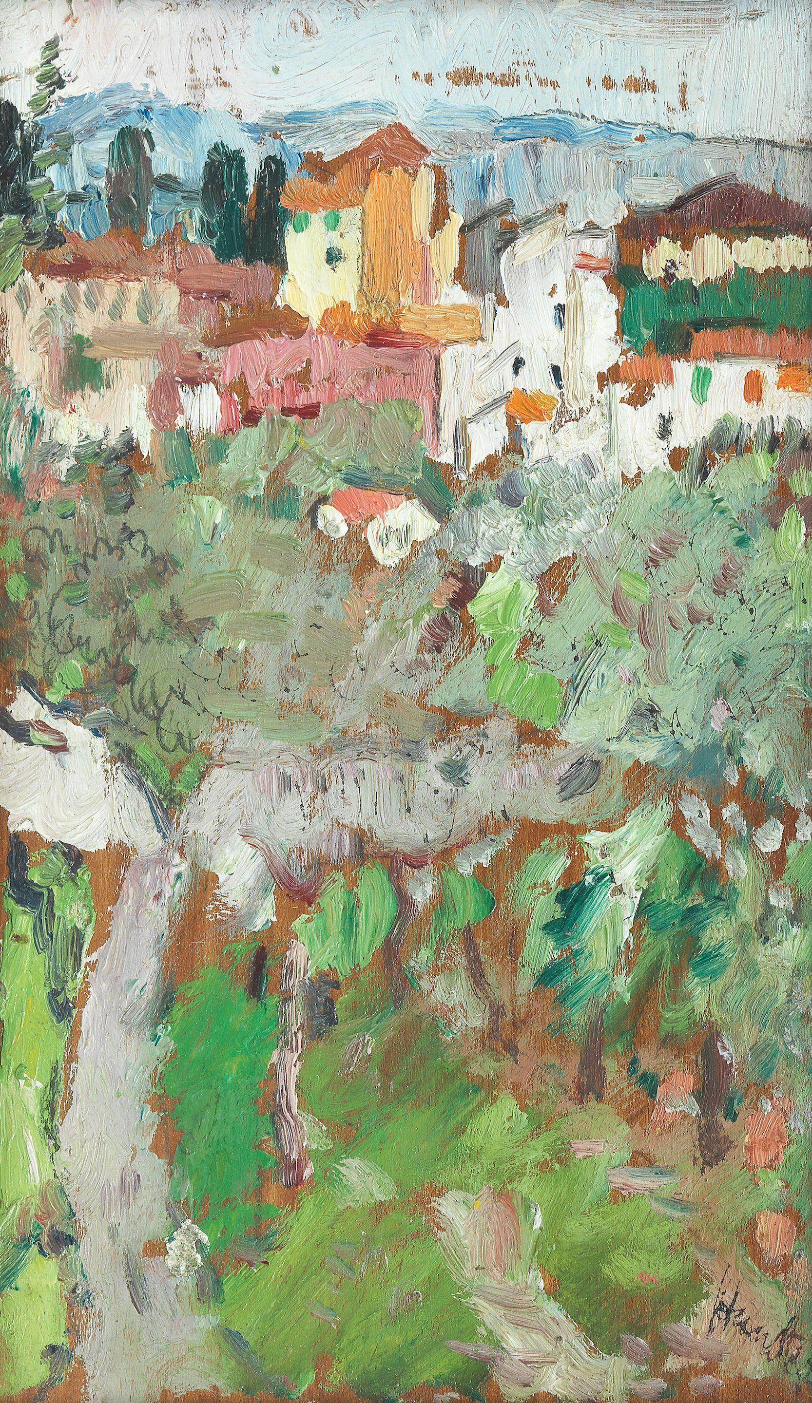 Die Arbeit Continental Village Painted circa 1922-1923 von George Leslie Hunter kam im Oktober diesen Jahres bei Bonhams in Paris zur Auktion. Dabei wurde der obere Schätzpreis von GBP 9.000,00 leicht übertroffen – das Kunstwerk fand für GBP 9.600,00 (€ 11.023,47) einen neuen Besitzer. Dieser Preis hat freilich nichts mit den Spitzenpreisen zu tun, die andere Arbeiten von George Leslie Hunter erzielen. Den höchsten von uns bisher beobachteten Preis erreichte die Arbeit Still Life With Tulips And Oranges im April 2009 mit einem Auktionsergebnis von GBP 433.250,00 (€ 484.118,60).