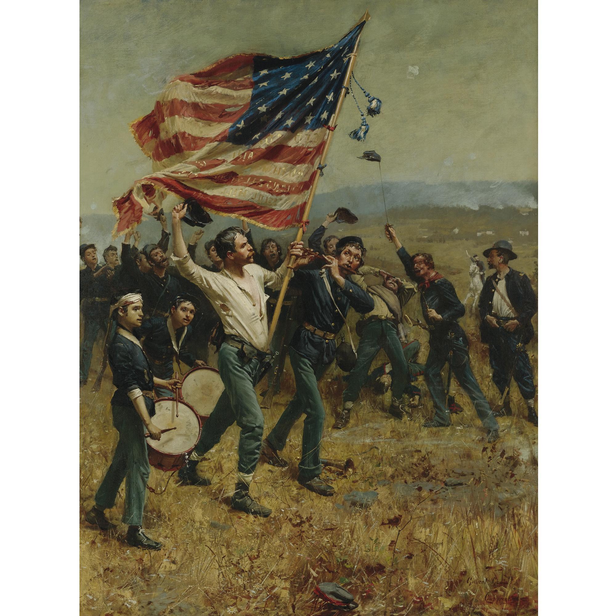 Dieses Kunstwerk von Gilbert Gaul erzielte im Mai 2010 bei Sothebys in New York einen unerwartet hohen Preis. In der Auktion American Paintings, Drawings & Sculpture wurde die Arbeit The Song Of Victory für USD 146.500,00 (€ 118.441,26) versteigert – und damit weit über dem oberen Schätzpreis von USD 60.000,00. Dieses hohe Ergebnis macht The Song Of Victory zu dem teuersten Kunstwerk von Gilbert Gaul, das wir bisher bei Auktionen beobachtet haben.