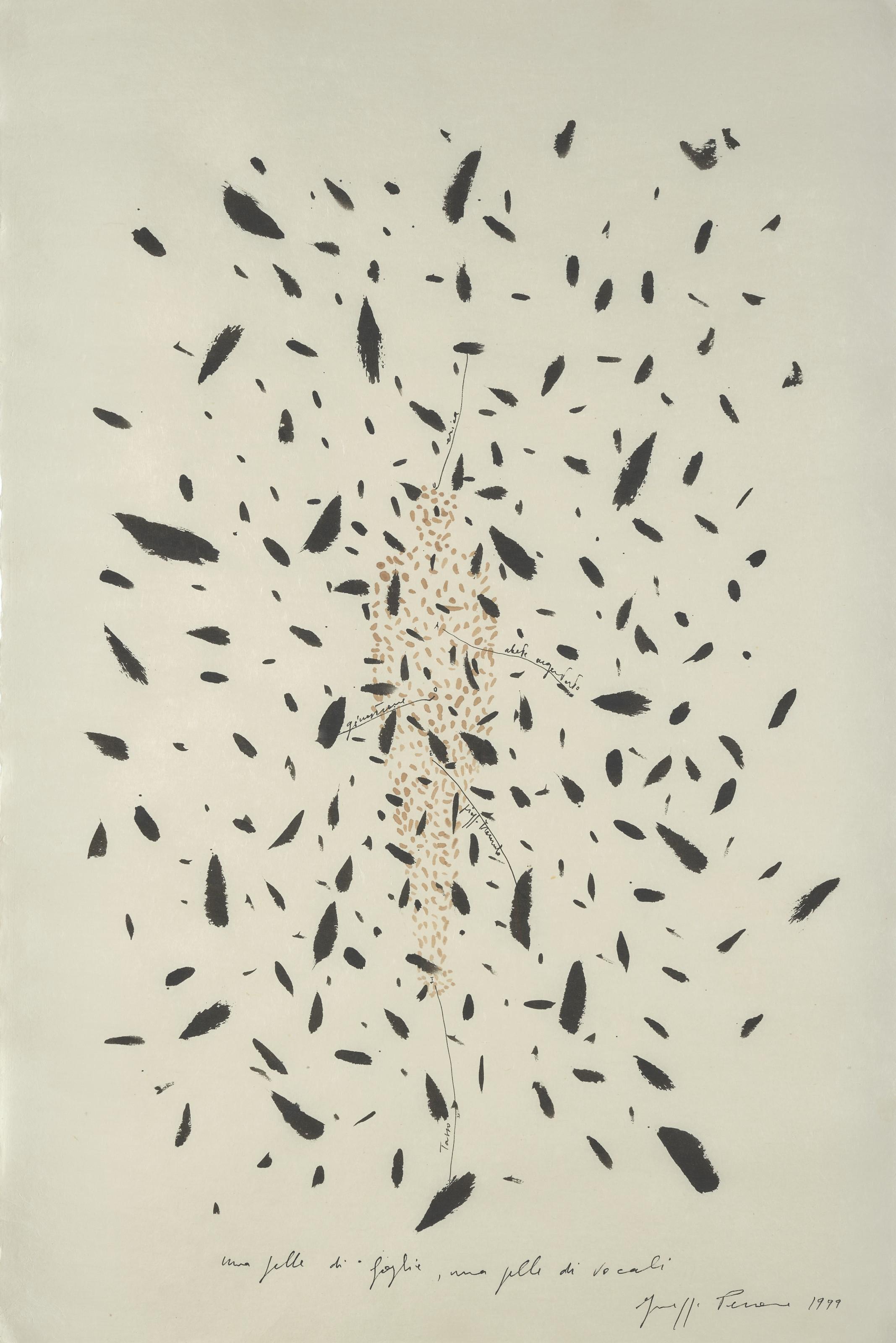 signed, titled and dated '"una pelle di foglie, una pelle di vocali" Giuseppe Penone 1999' (lower edge)