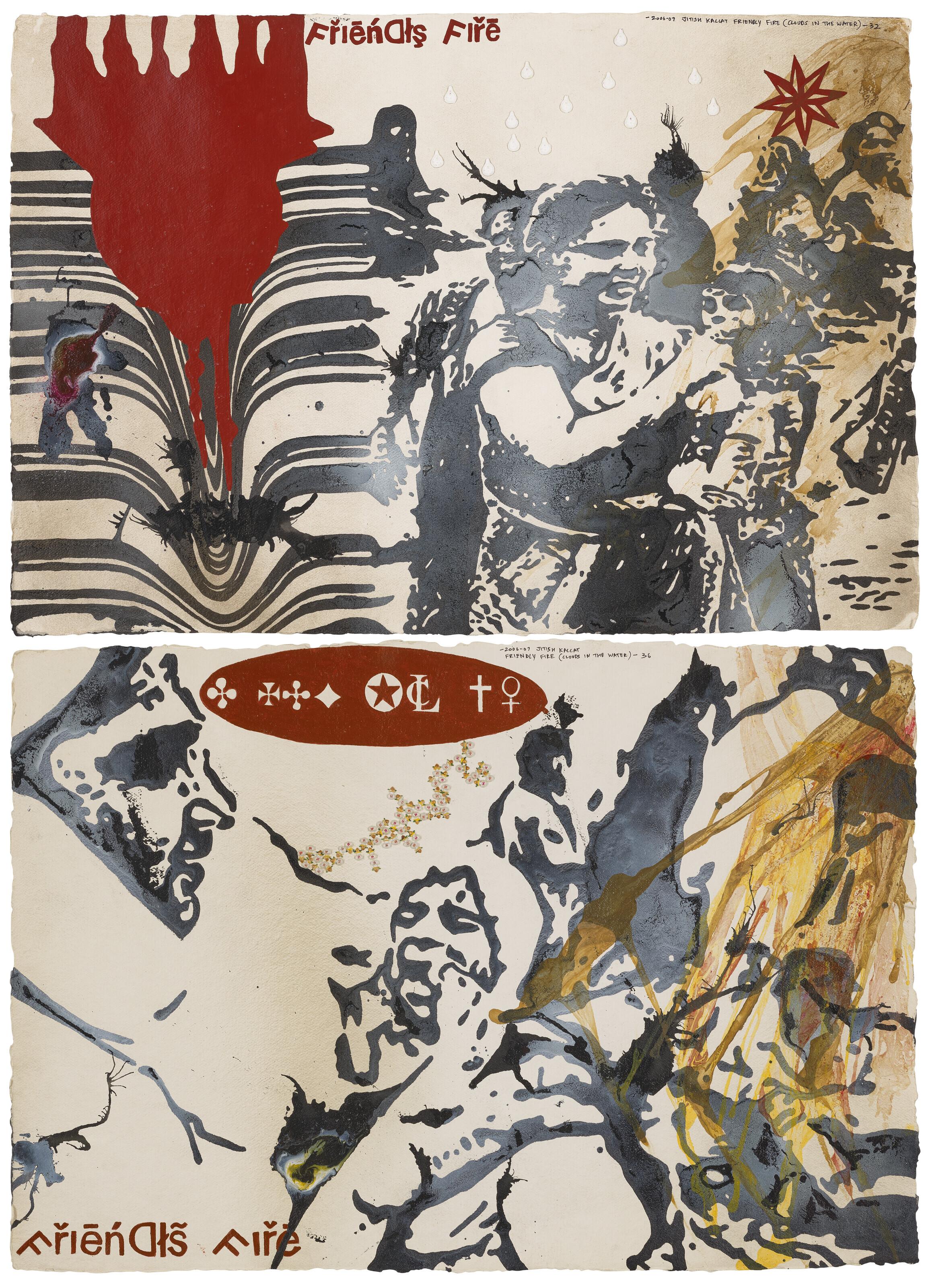 dated inscribed and titled '2006-07 JITISH KALLAT FRIENDLY FIRE (CLOUDS IN THE WATER) - 32' (upper right) and '2006-07 JITISH KALLAT FRIENDLY FIRE (CLOUDS IN THE WATER) - 36' (upper center) respectively