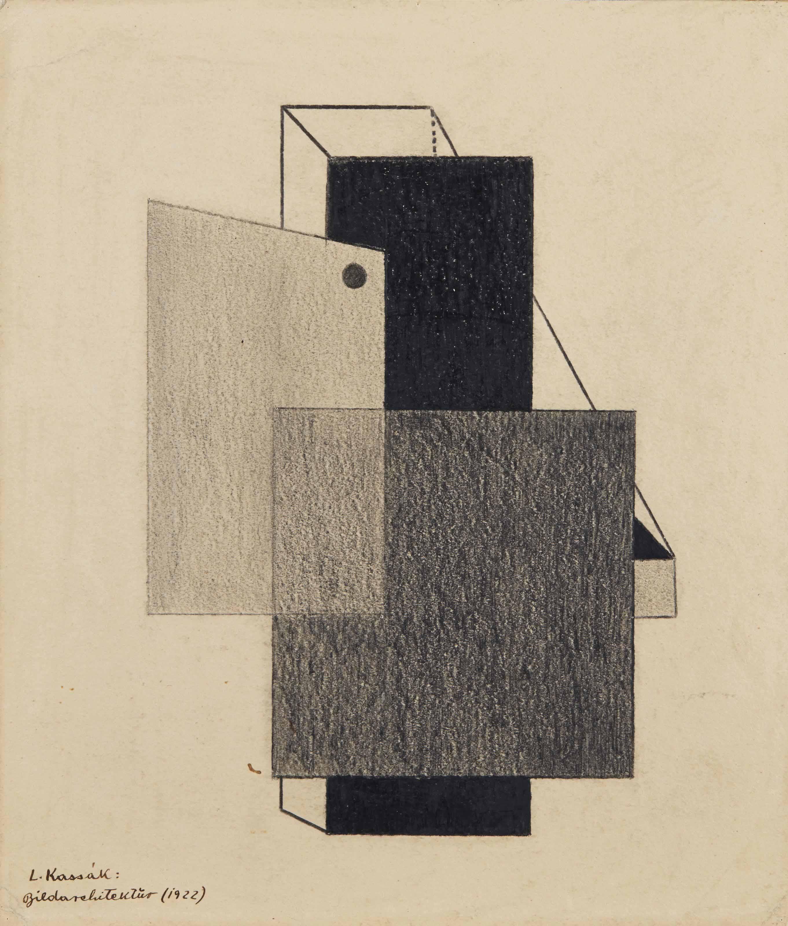 bears the signature, tiltle and inscritpion 'L. Kassák : Bildarchitektür (1922)' (lower left)