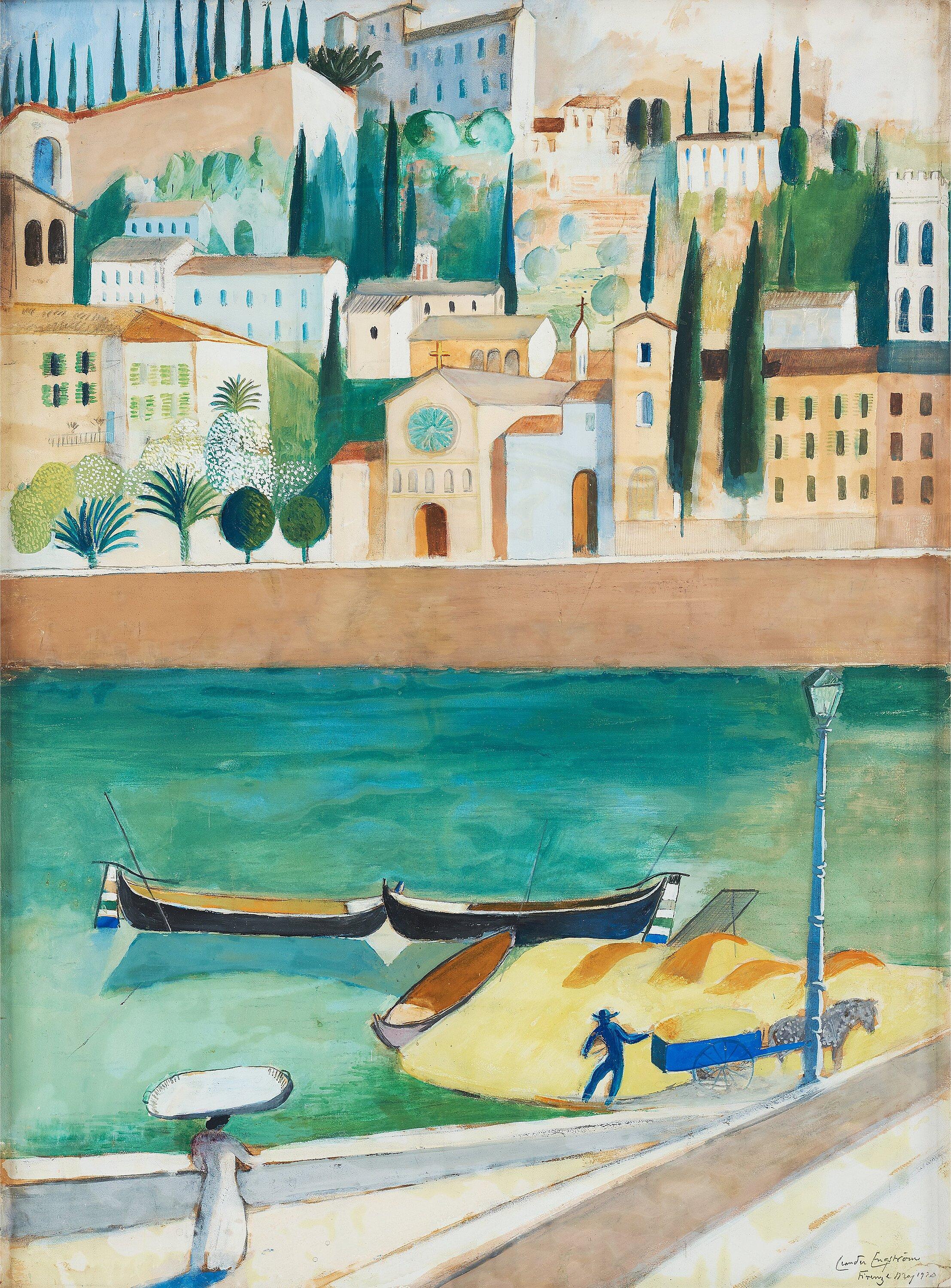 Signed Leander Engström Firenze Maj 1920. Mixed media on paper 88 x 64 cm.