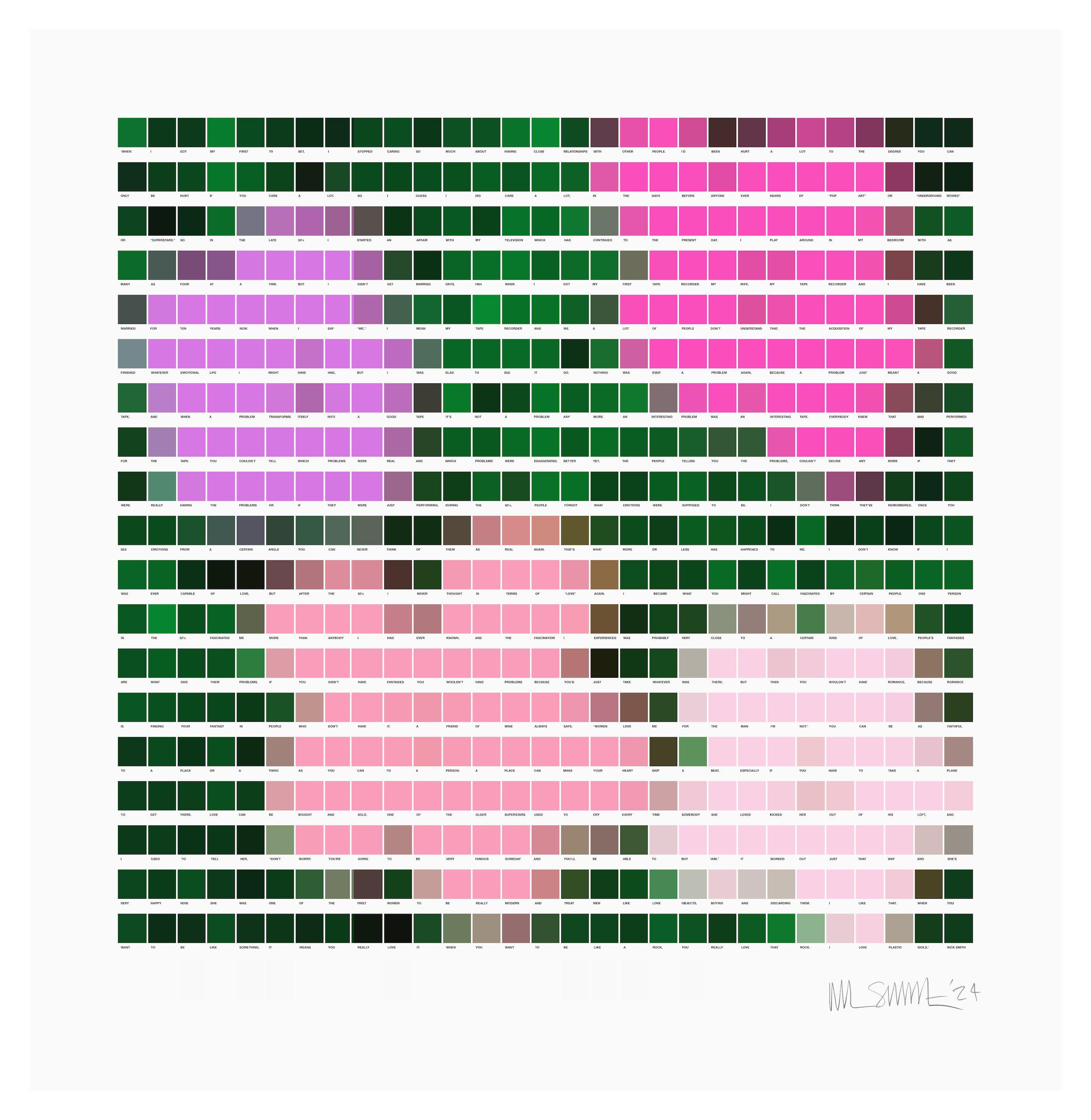Colour Chip collage, 2024, on wove paper, signed and dated in pencil, especially created by the artist on the occasion of Hot Off The Press sale, 1st May 2024, Bonhams, New Bond Street, London, the full sheet, framed