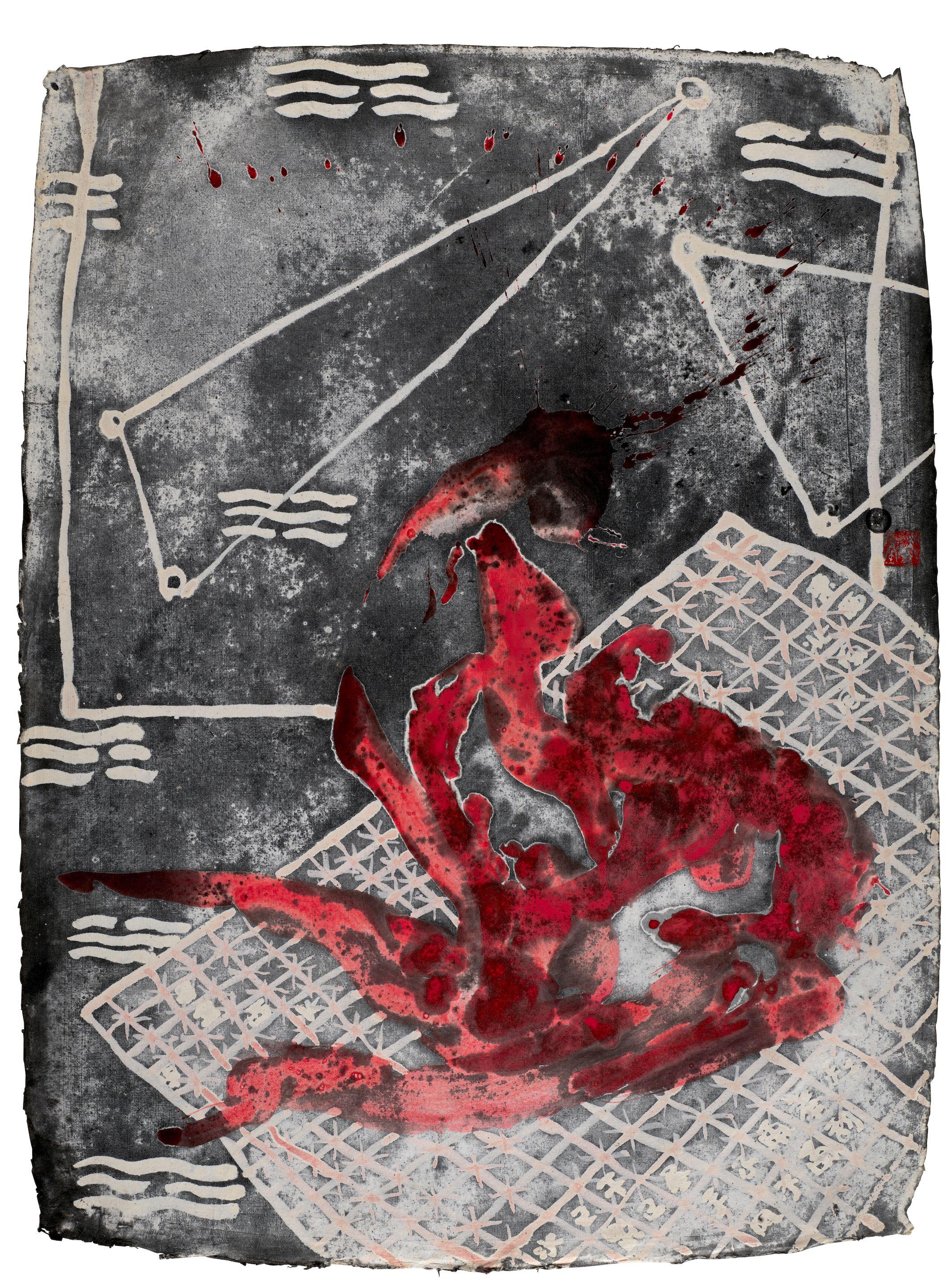 Ink and color on paper, framed and glazed, with an artist's seal.