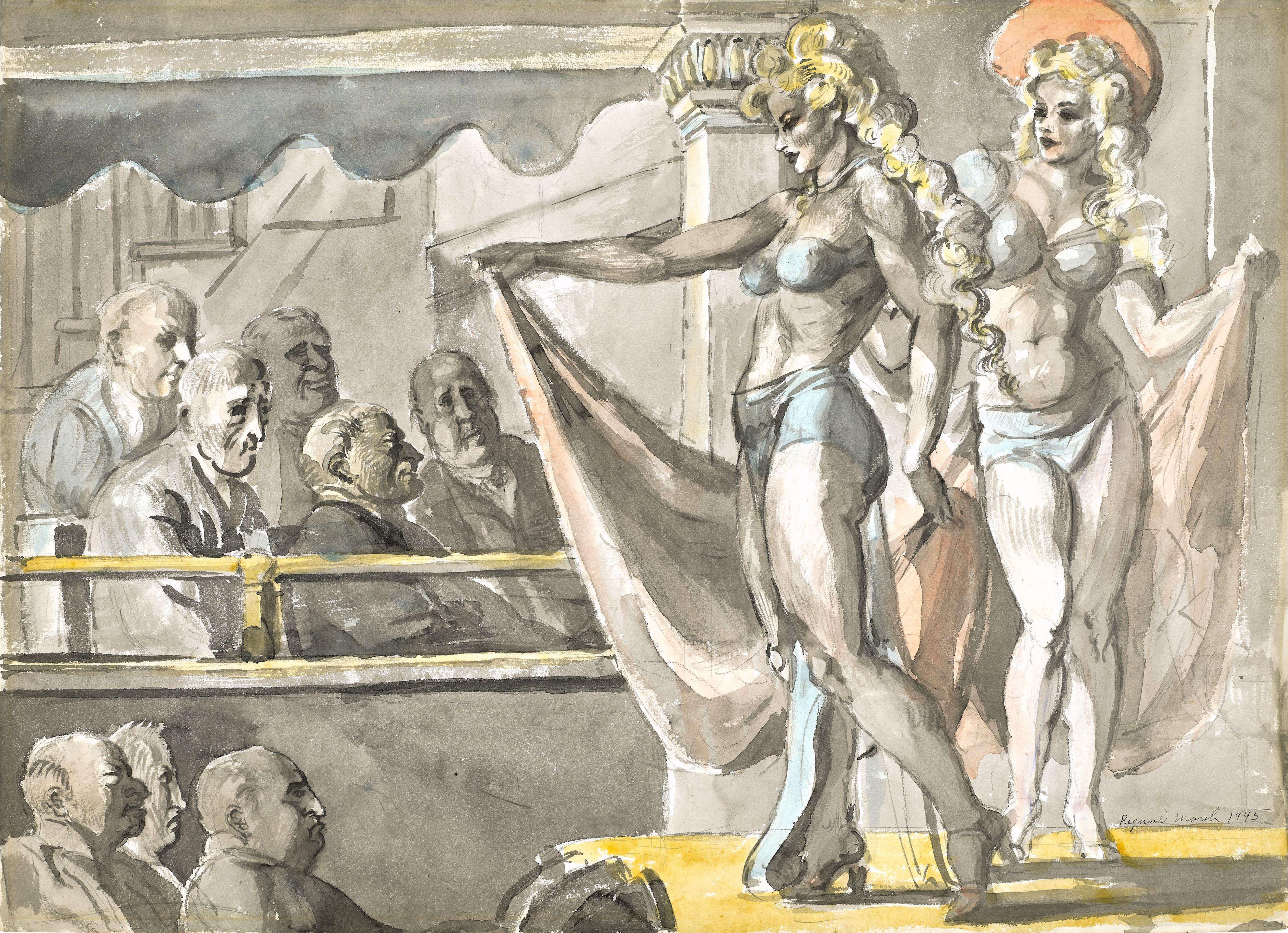 signed and dated 'Reginald Marsh 1945' (lower right, recto) and inscribed with title, signed again and dated '1944' (lower right, verso)