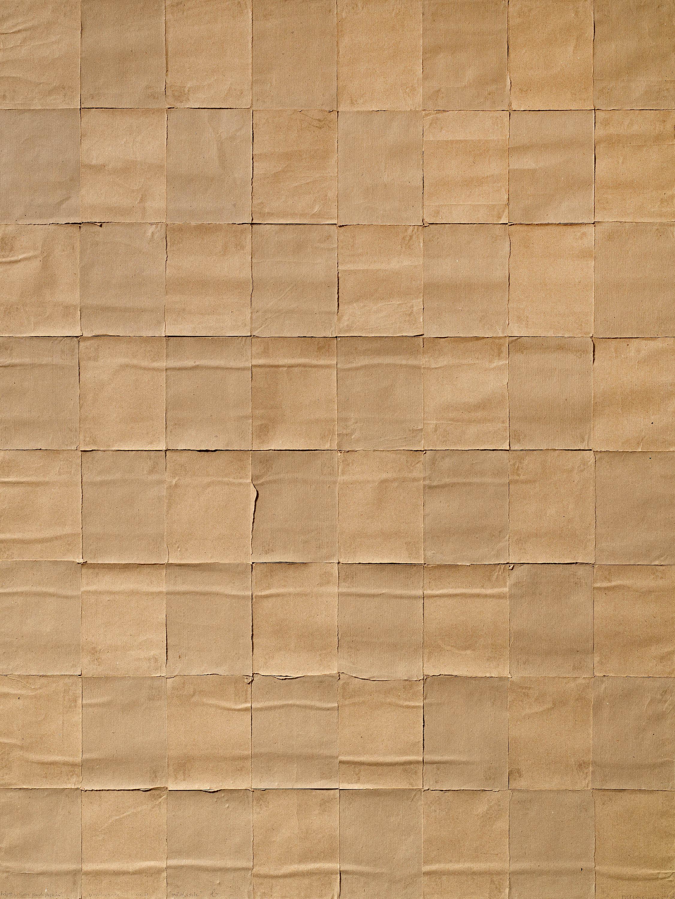 Technik: Collage aus Packpapierstücken auf Hartfaser.