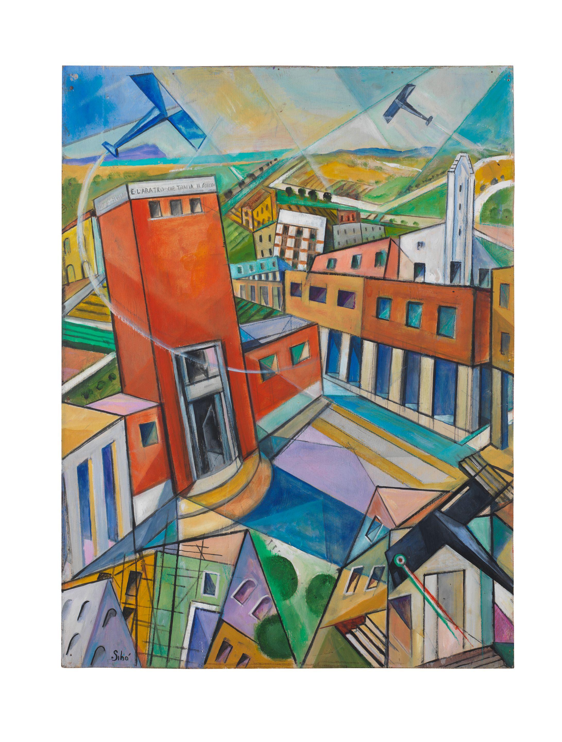 signed 'Sibó' (lower left); signed, inscribed and dated 'Sibó "Virata su Pontinia" 1939' (on the reverse)
