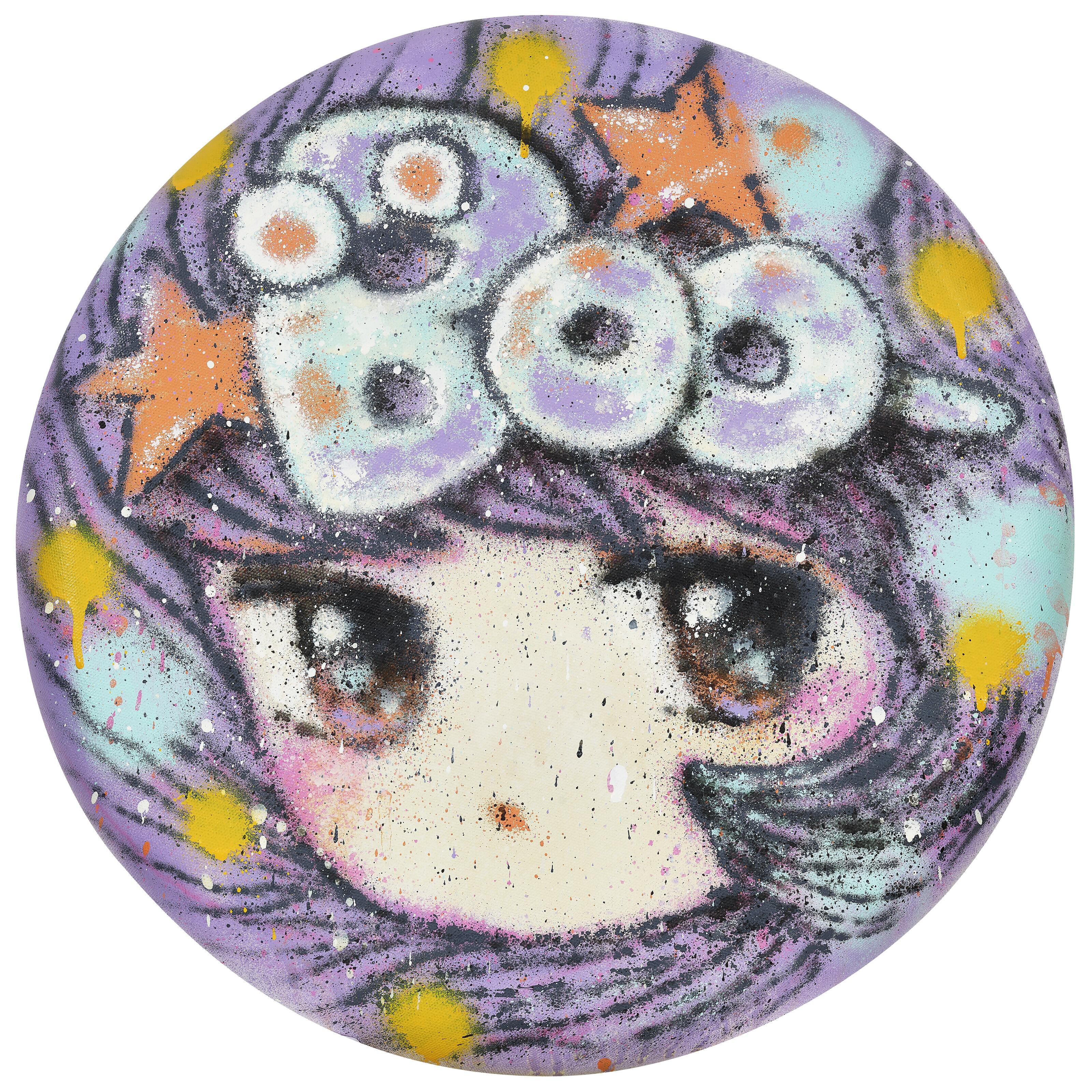 STICKYMONGER (B.1979) Untitled signed and dated ‘Stickymonger 2019’ (on the reverse) spray paint and acrylic on canvas Diameter 40.6 cm. (16 in.) Painted in 2019
