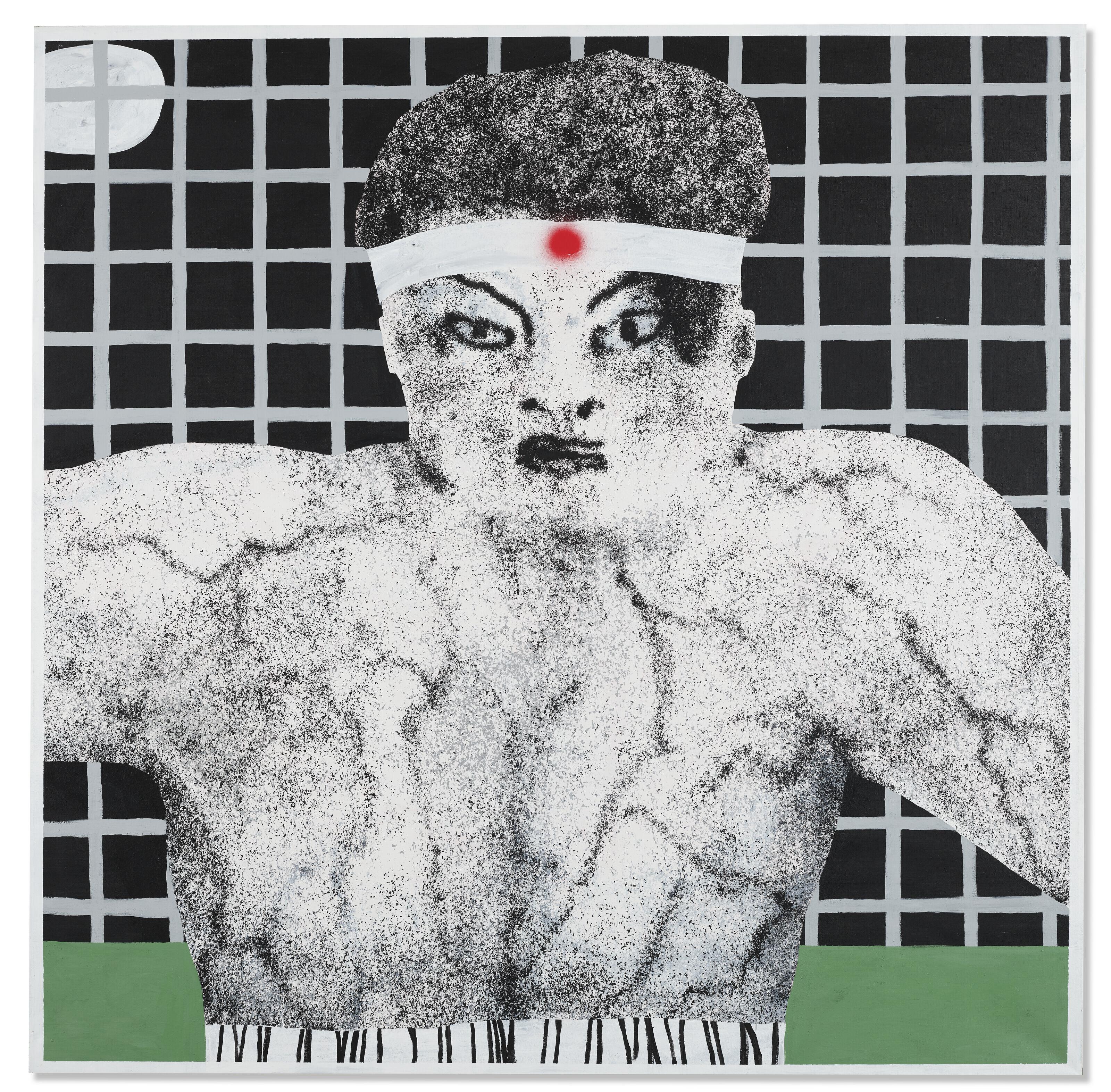 VOJTĚCH KOVAŘÍK (B. 1993) Bruce Lee signed with artist's initials and dated 'VK 18' (on the reverse) acrylic and spray paint on canvas 78 3 ⁄ 8 x 78 3 ⁄ 8 in. (199 x 199cm.) Executed in 2018