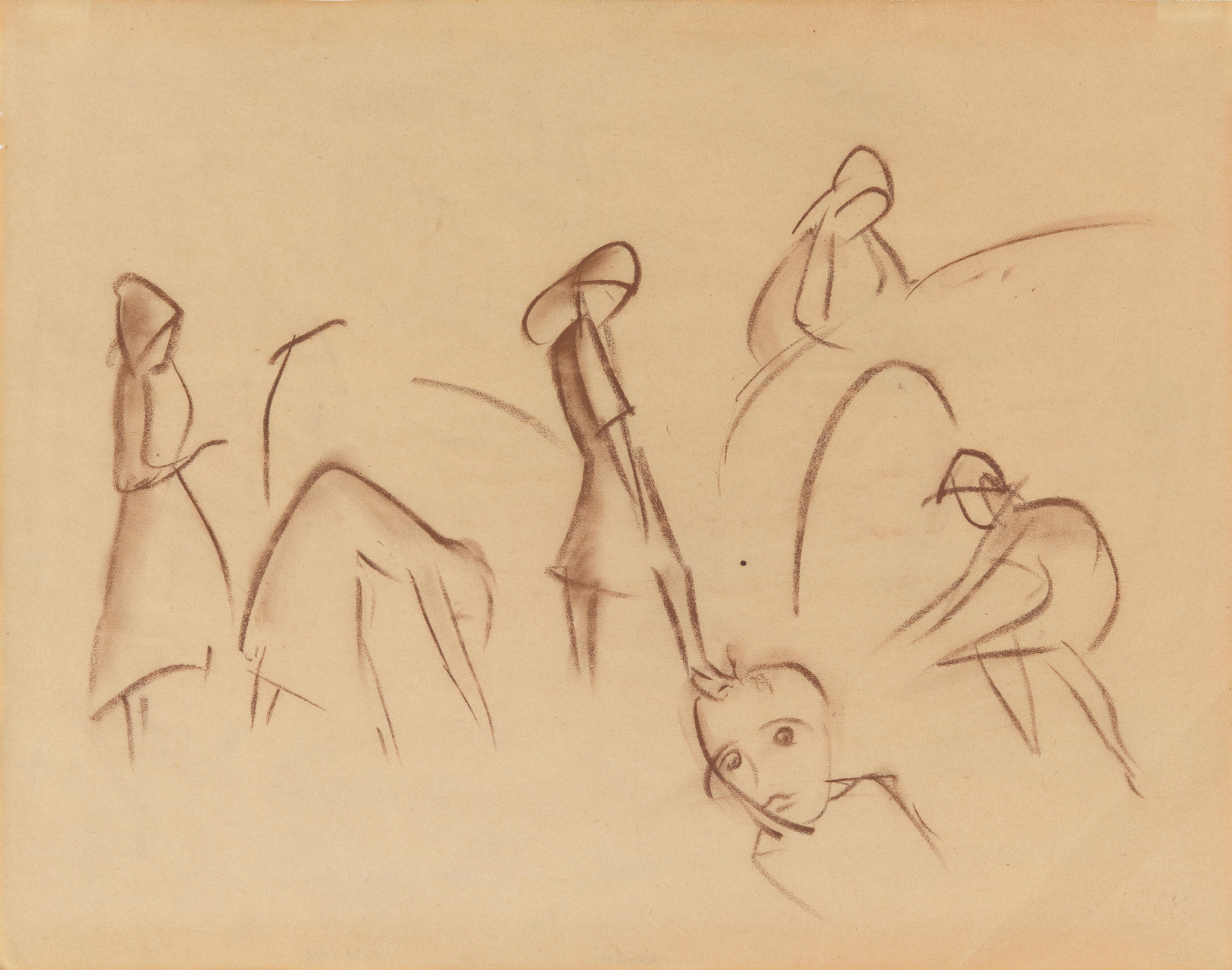 Braune Farbkreide auf pergamentartigem Papier mit perforiertem Oberrand 32,3 x 41,2 cm. Unter Glas gerahmt. Unten rechts mit dem verblassten Signaturstempel 'OPHEY' versehen. - Minimal gebräunt, die unteren Ecken mit schwachen Diagonalfalten. Ein kurzer Randeinriss oben hinterlegt.