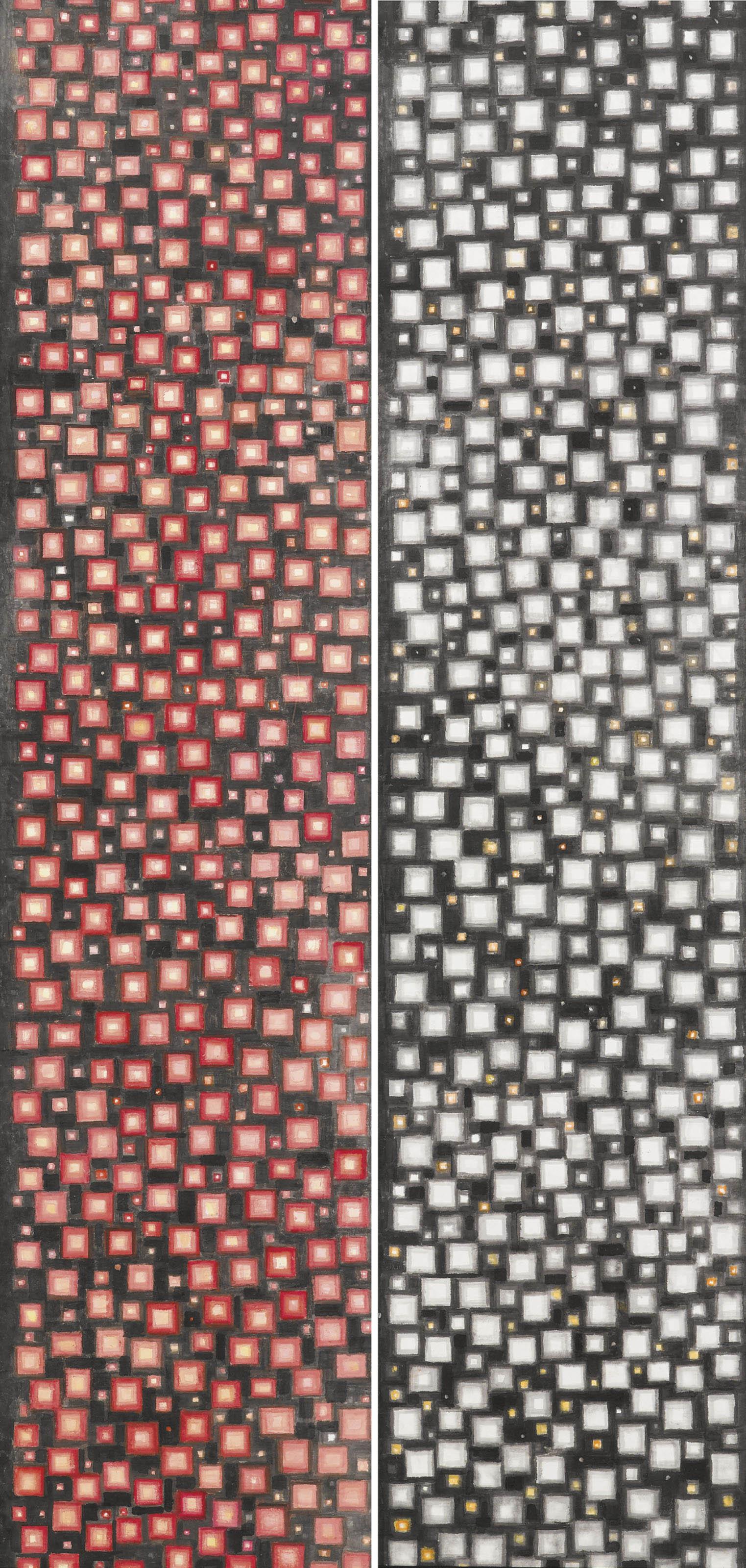 Each scroll measures 137 x 33 cm. (54 x 13 in.)