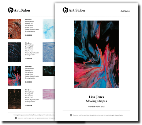 We offer high-quality art galleries the opportunity to present their artists in the Art.Salon, thereby reaching many thousands of collectors worldwide. We limit ourselves exclusively to ‘fine art’ and place great value on a high-quality selection. You therefore need to make a short, simple application to be accepted as a gallery for the Art.Salon.