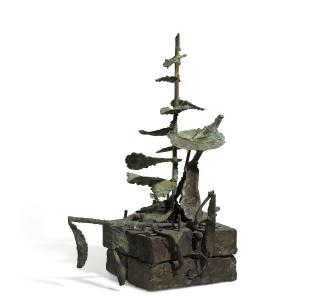 Mezzo Albero Con Mele E Perabronze With Green And Gold Patina. Executed In 1971.