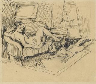 Reclining Woman And Man And Wolf: A Double Sided Drawing