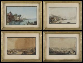 Title: Eine Fähre mit einer vierspännigen Karosse mit Blick auf Rhenen. 1644.