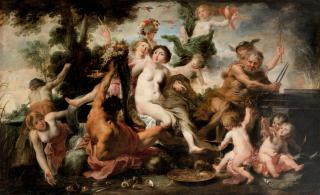 Title: Eine Fähre mit einer vierspännigen Karosse mit Blick auf Rhenen. 1644.