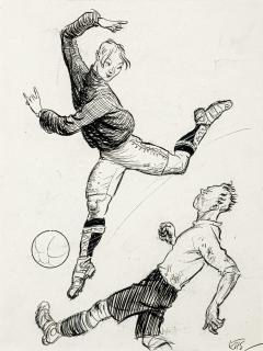 Title: Summer Pastimes, Ltd. Secretary of a Football Company (on the Grand Stand): 'Yes it's a bit hot – but then look at the gate, boys!'