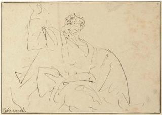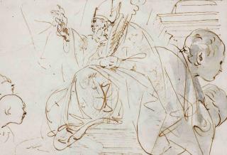 Evêque assis et étude de têtes d'hommes