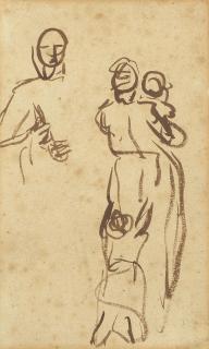 Title: Figures before Wadenhoe Church, Northamptonshire