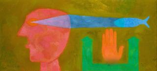 "Auge und blaue Figur".