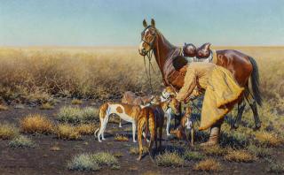 Title: Stillleben mit Pfirsichen und Trauben auf weißem Tischtuch