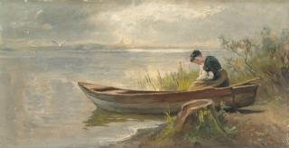 Title: Landleute vor einem Unwetter flüchtend (Bauern vor der Kapelle)