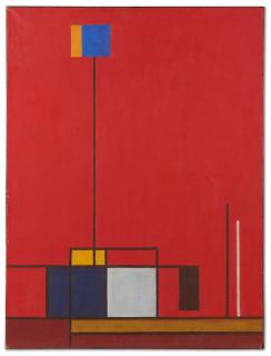 Composizionesigned; Signed, Inscribed, Dedicated To Bruno Giraldi And Dated 1963 On The Reverse, Oil On Canvas
