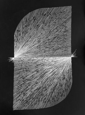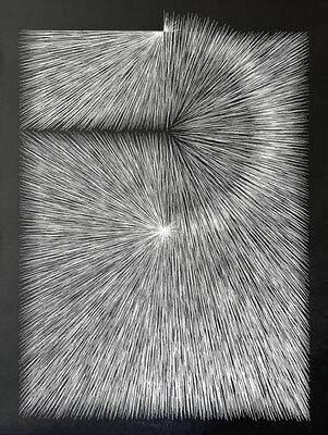 Oil paint and cotton thread on Fabriano Rosaespina paper 285 g/m²