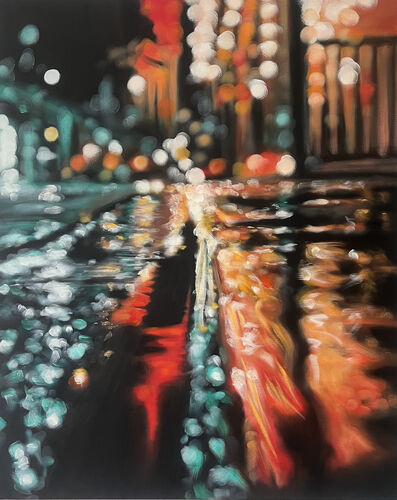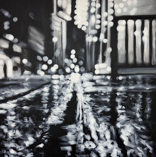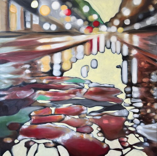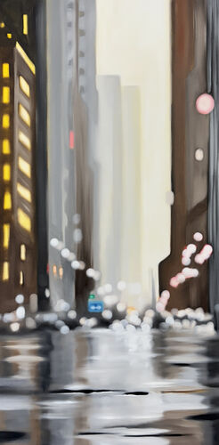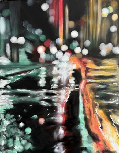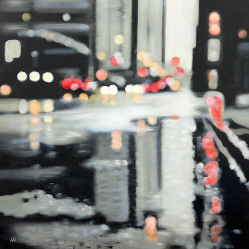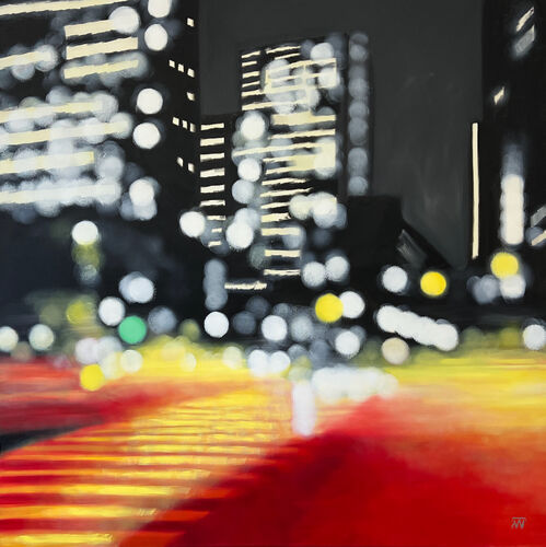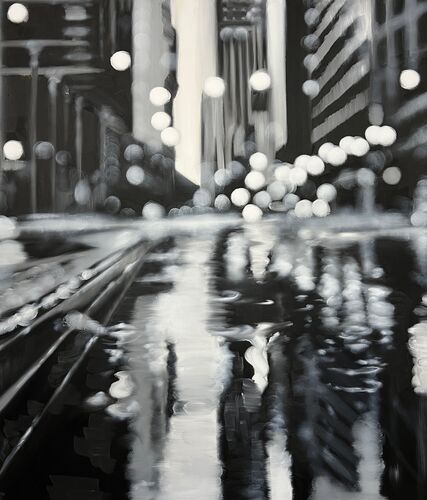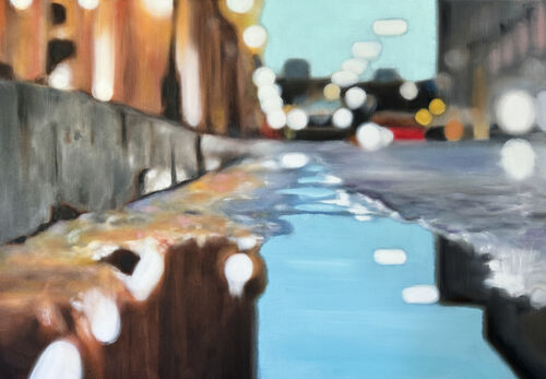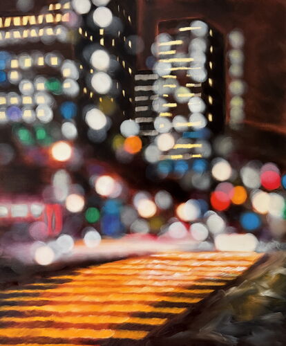 A warm summer night, after a short rain shower the lights reflect even brighter in the darkness. What Angela Wichmann fascinates is the effect of light in its many facets, so that it has become the dominant theme in my works. She is constantly captivated by it in order to bring it to bear on the canvas - a challenge that I set myself anew with every picture. Her pictures mostly appear to lack visual acuity and are hardly clearly defined - the contours seem to blur. What they all have in common is the depth effect achieved through the spatial composition.