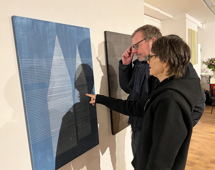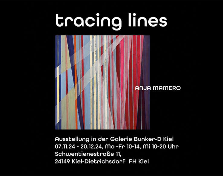 “Tracing Lines": The title of the exhibition already addresses key aspects that occurred to me when I was looking at Anja Mamero's work. At its core is the ambiguity that the title carries. On the one hand, I mean an active part; the part in which the action lies with the individual subject, the people who look at the pictures: those who follow the lines with their gaze. On the other hand, there is the more passive aspect, which in turn emanates from the paintings and the lines: pursuing lines.