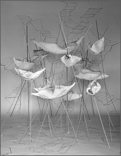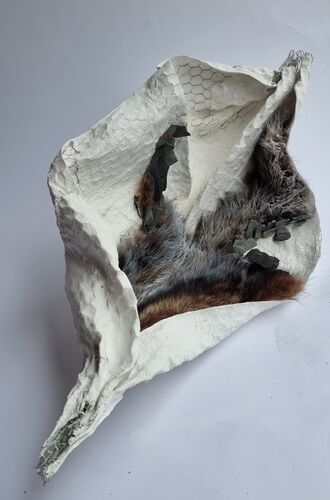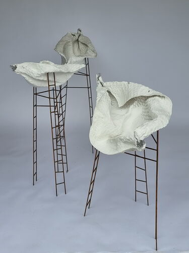My early works mainly were pencil drawings and oil paintings. As I am always looking for new challenges, I extended my artistic spectrum to other disciplines. Thus, the path to sculpure in the more classical sense led me to rather atypical sculpural materials, which I brought into the 3rd dimesnion, such as paper or fabric .