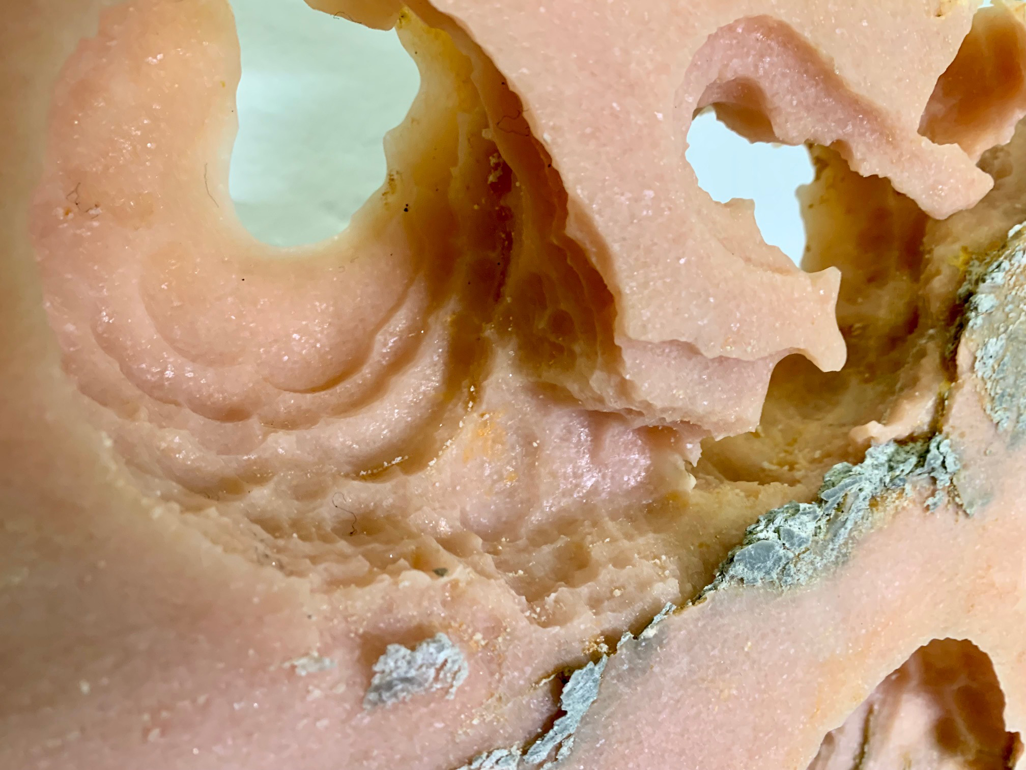 I use sculptural means to explore the limits of the material and its properties. To do this, I am driven into the stone and I try to discover its structures. In doing so, I free myself from the idea that I can control the stone and leave it more and more to other active forces such as salts, acids and trace elements in experimental arrangements. In this way, the processes of formation, transformation and corrosion become visible and tangible. The seemingly lifeless stone is transformed from a sculptural object into an idiosyncratic "actant" (cf. Bruno Latour, The Parliament of Things). I understand my sculptural work as an approach to the stone as a counterpart. Only by working in partnership with this material at the interface of natural and cultural design can these wondrously bizarre forms emerge.