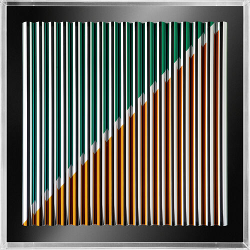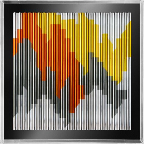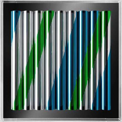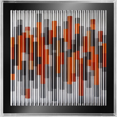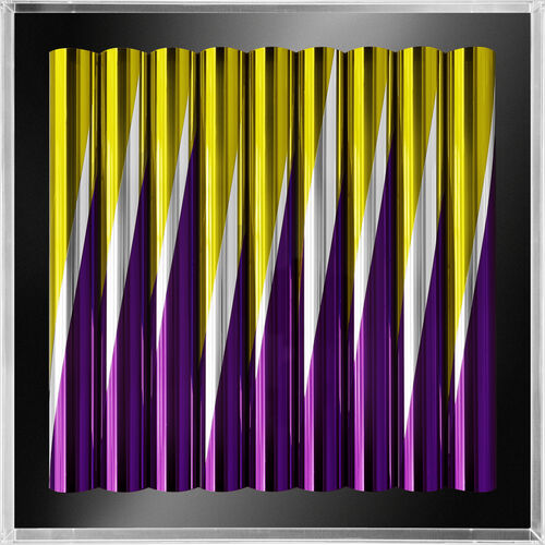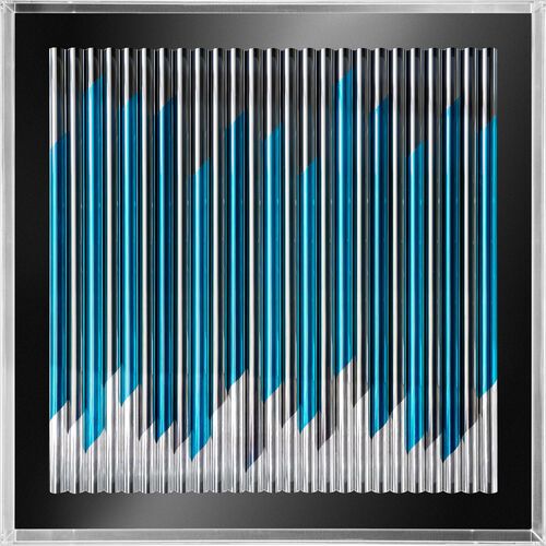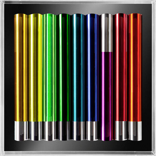 Schittny’s elegant wall object series “Tubes” combines ideas of Avant-Garde geometric abstract art, post-war modernism and Op-Art. The special appeal of these pieces lies in their absence of representational content. The “Tubes” have a rational-geometric structure but are equally sensual and overwhelming in their brilliance which changes and shimmers depending on the angle of view and the incidence of light. These new works by Burkhard Schittny perfectly balance between minimalist reduction and blinding illusionism.