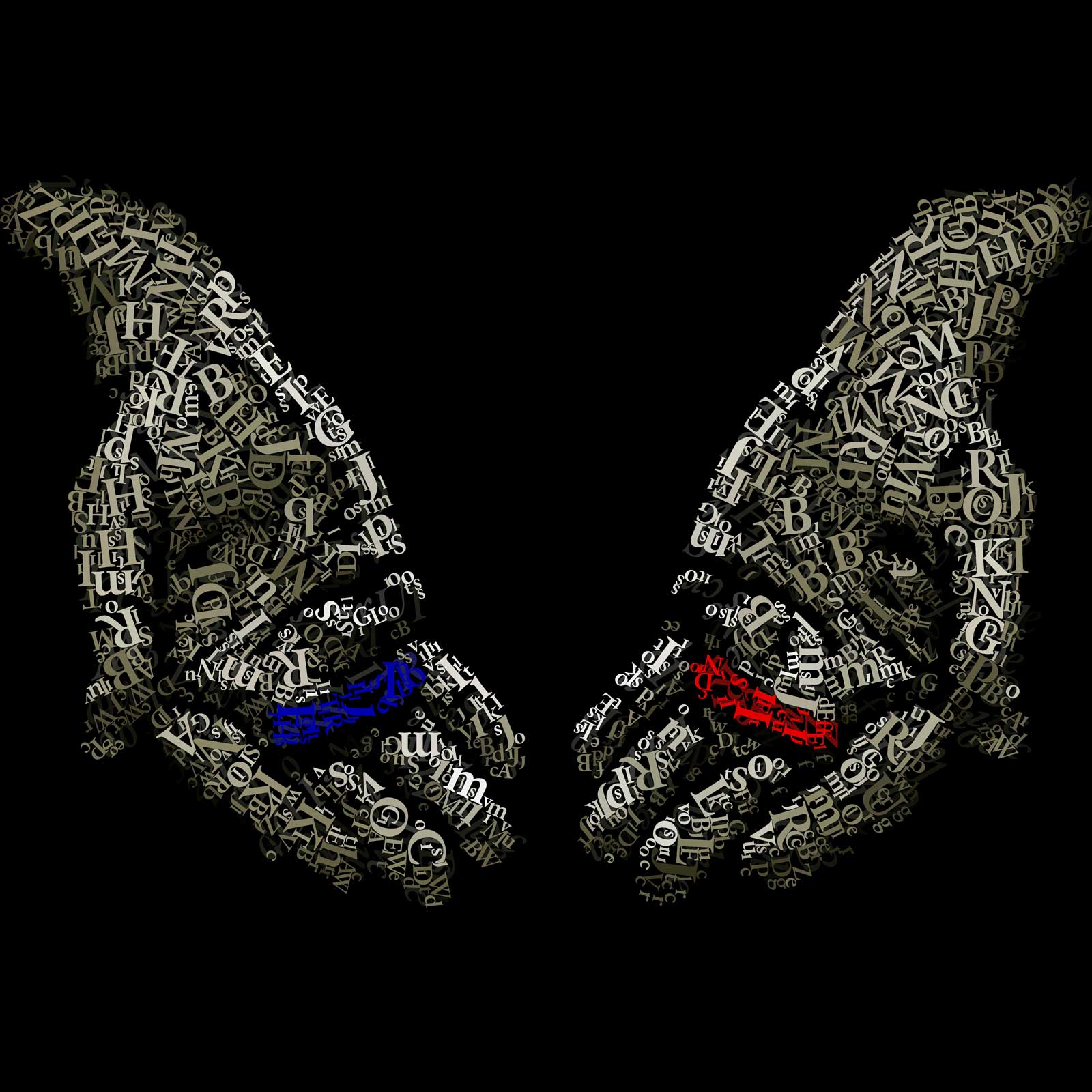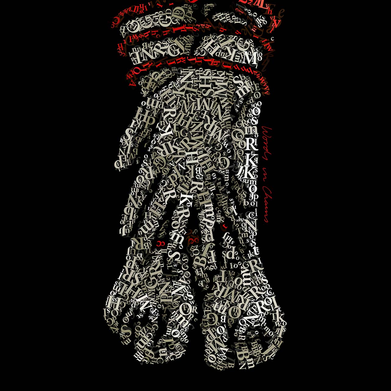 In Words in Chain, Christian Z translates language into a powerful and unsettling visual form, shaping a pair of bound hands composed entirely of overlapping, chaotic, screaming typographic characters. The work is a tangible manifestation of chained language—a silent cry where words, instead of liberating, become a prison. The anatomical form emerges from a dense forest of letters, as if identity itself were the result of a semantic overdose.