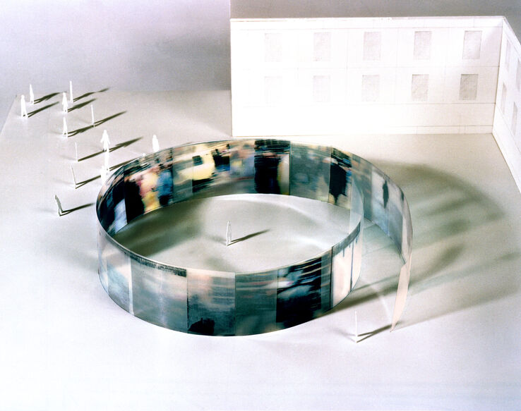 The artwork appears completely different from every perspective. Depending on the angle of view, different fragments appear in the foreground or background, and sometimes they disappear completely. The result is an impression similar to that of a landscape seen from a moving car.