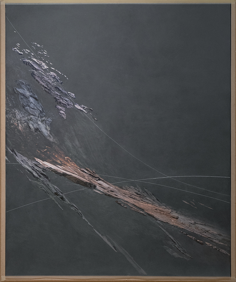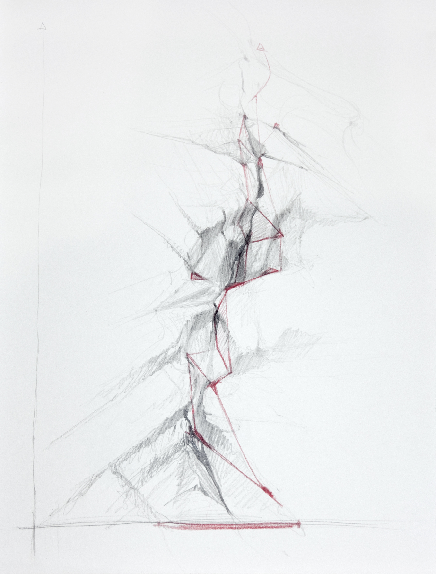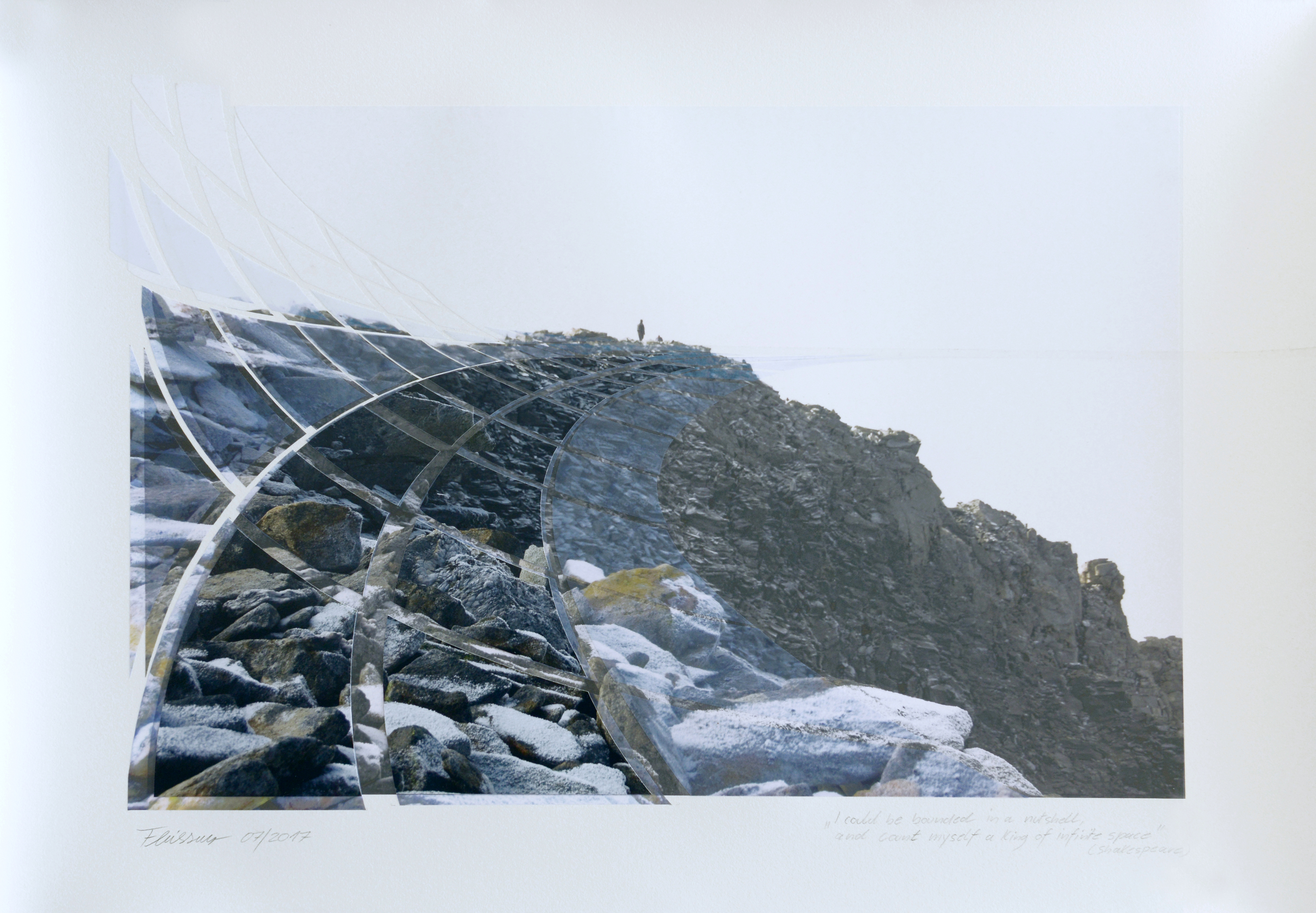 He looks through his image into the abyss of the mountain landscape and at the same time at the ground on which he stands.