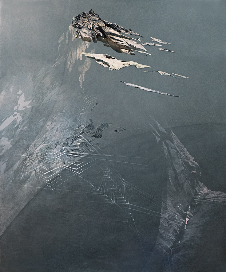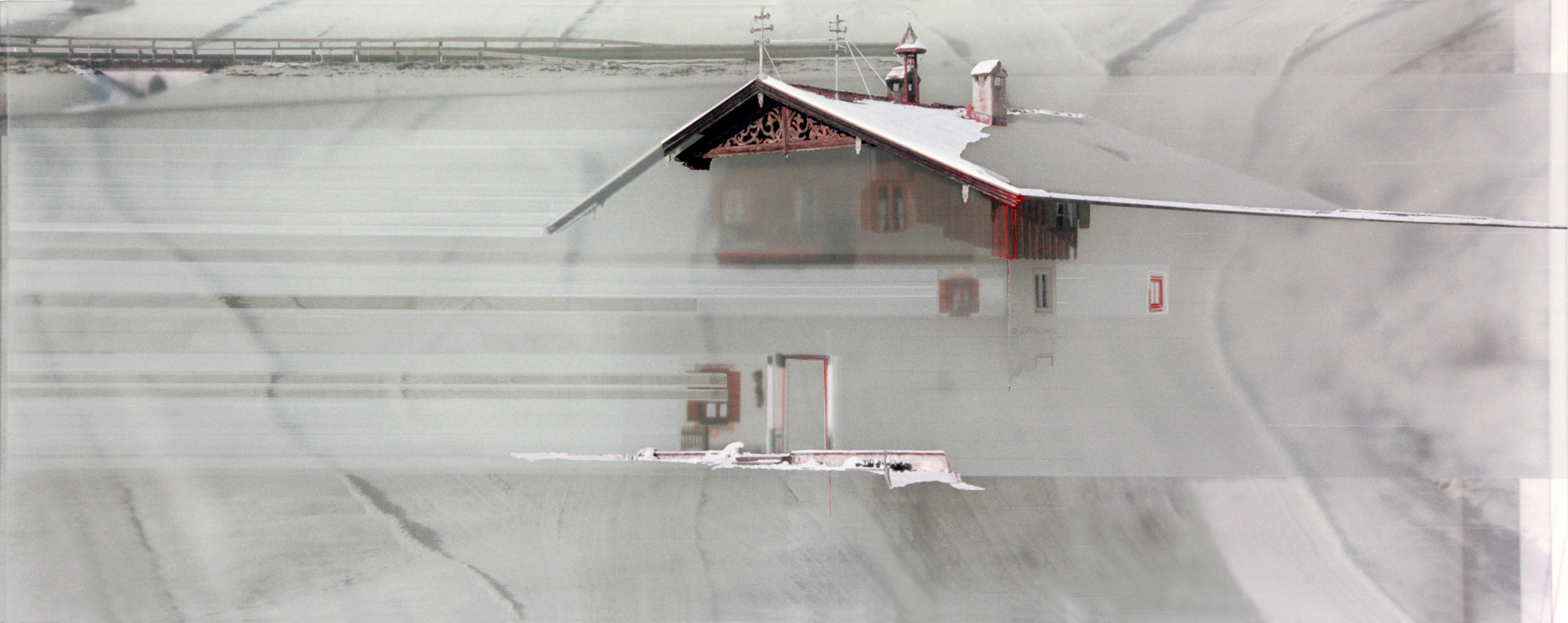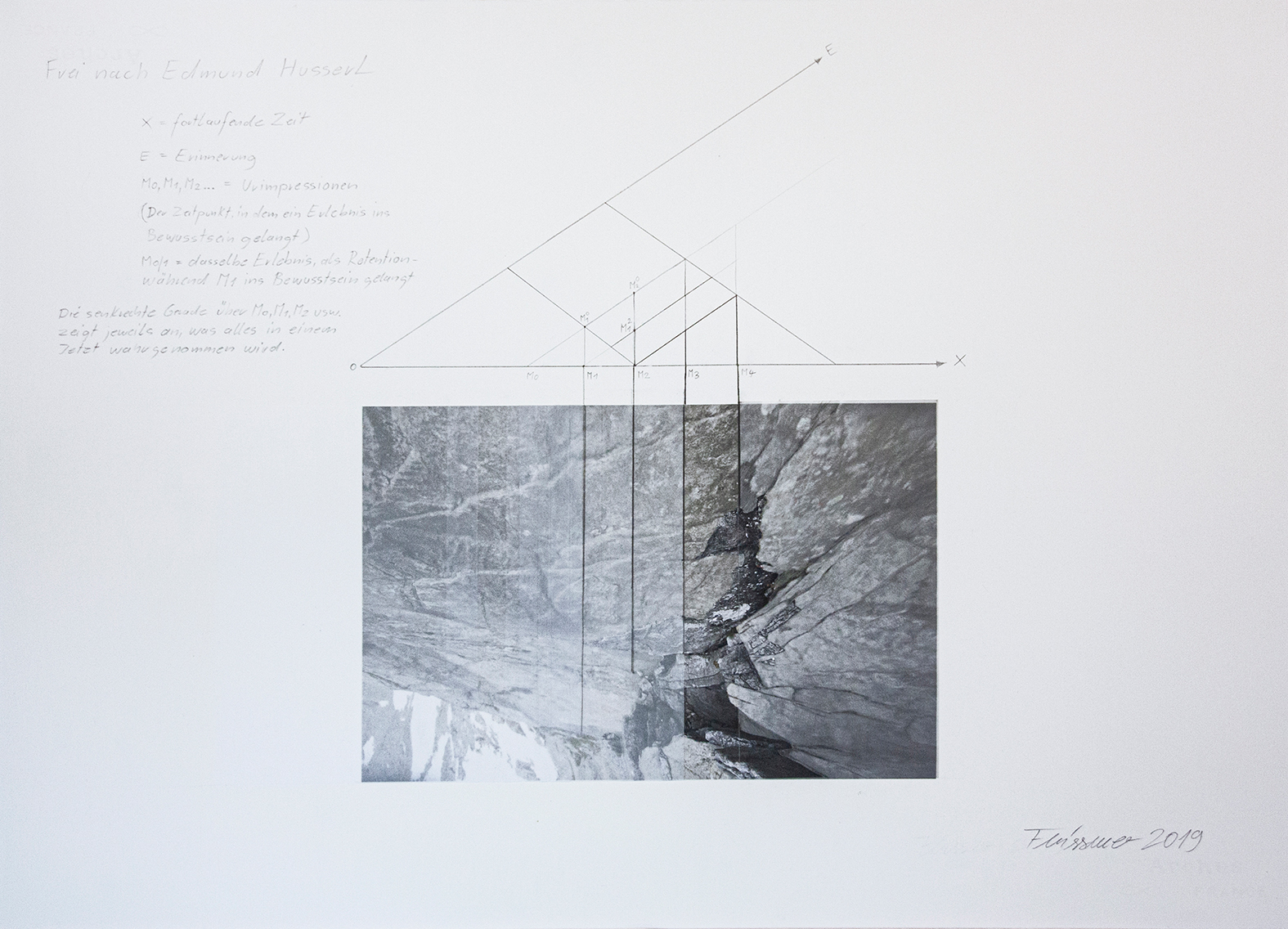 He looks through his image into the abyss of the mountain landscape and at the same time at the ground on which he stands.