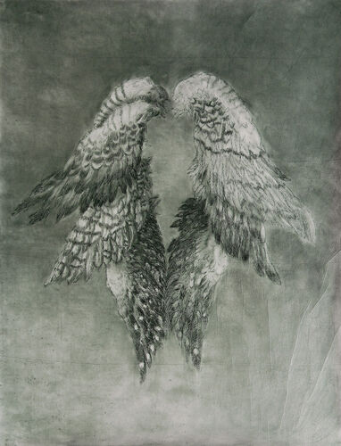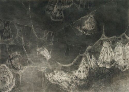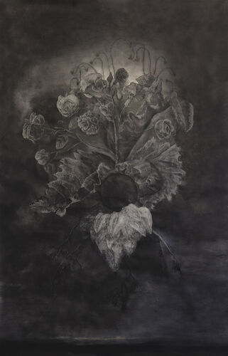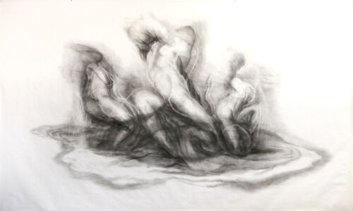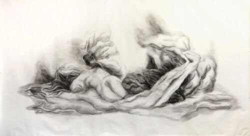 There is a paradox between the visibility of the heavy patches of charcoal and the universal themes in the works and between the platform on which Dror works: simple paper, so transitory and fragile.
