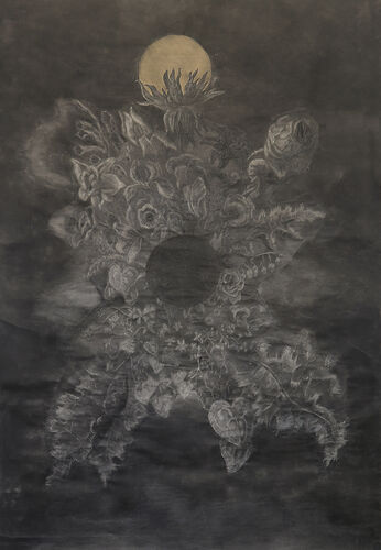 His recent works are on paper, using drawing materials, primarily various charcoals and crayons.