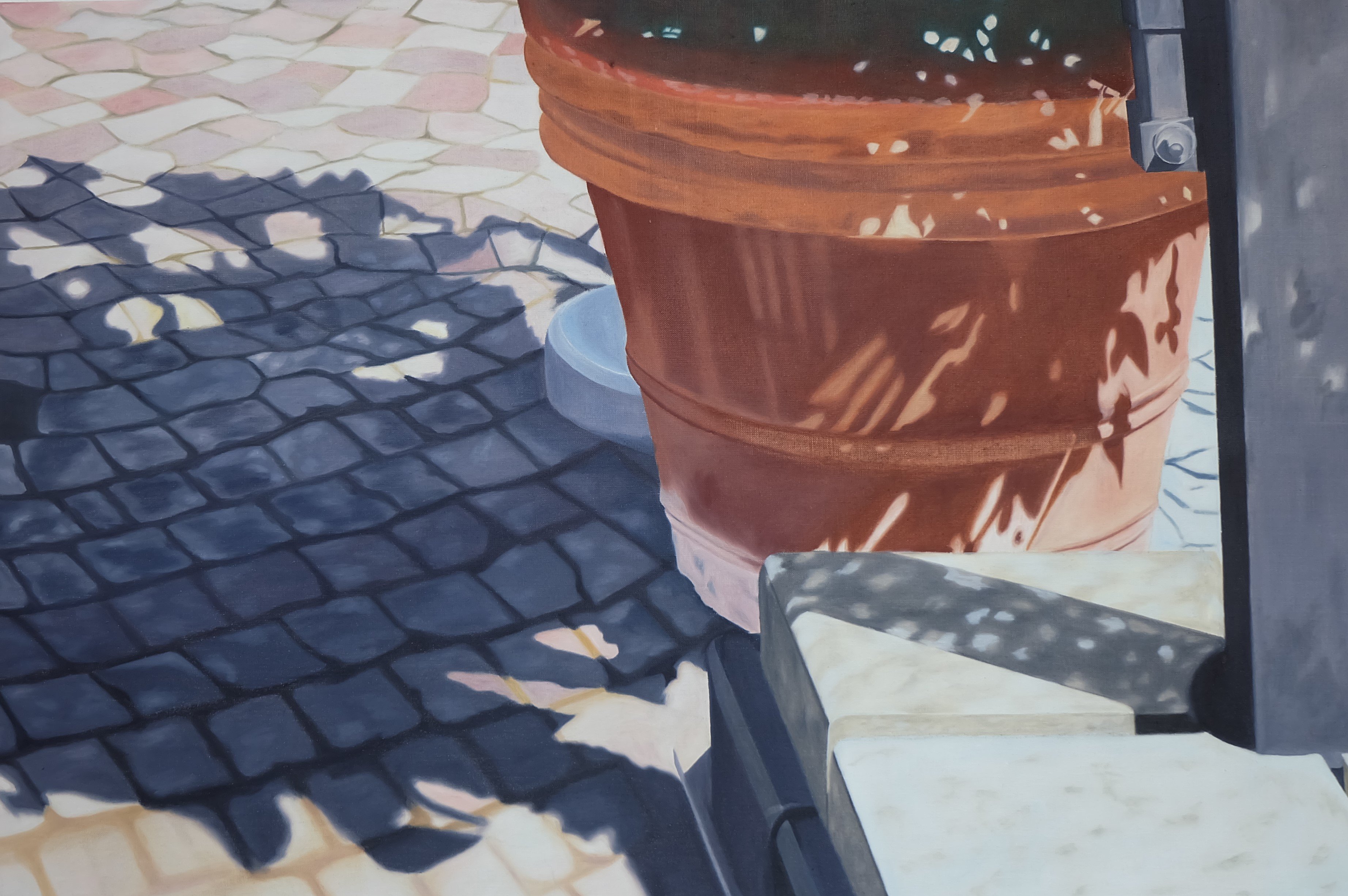 In my painting I deal with the things of everyday life. I devote special attention to them, observing and deciphering them. I am driven by curiosity and the creation of something new. I take a close look at motifs that arouse my interest, discovering sections or details that I then transform into paintings. My figurative painting often appears abstract, because I like to distort the supposedly unambiguous. Mystery and humor play a major role in my painting.