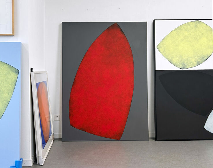 Ich verwende immer wieder ähnliche Farben. Trotzdem wirken sie immer wieder anders. Wenn ein Bild hauptsächlich aus einer Form besteht, ist die Farbe enorm wichtig. Die Farbe muss genau richtig sein.