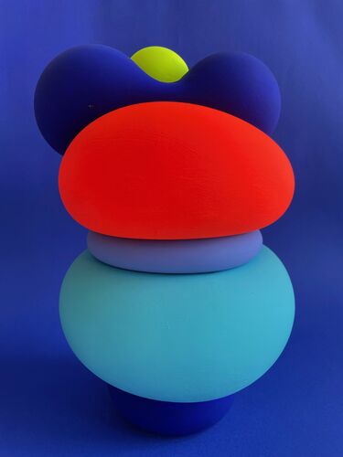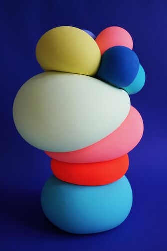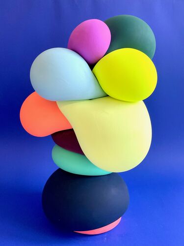With her new series of works Balloons, Gabriele Ludewig creates sculptures of condensed energy. Precisely balanced curves of intense color combine to form comic-like figures that radiate joy and vitality. The piled forms and colors transfer the principle of expression and response in the painterly process to the sculpture. The Balloons are both concrete and an inspiration for imaginations that turn them into a society of quirky characters.
