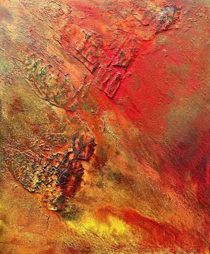 In my pursuit of abstract and expressive art, I incorporate unconventional materials such as marble dust, limestone , kind of plaster, glue, stone powder, pigments and many more. These materials are applied to diverse surfaces like canvas, wood, and various types of paper, each offering a unique texture and effect. The use of these structure-creating materials consistently results in vibrant, unexpected creations that continue to evolve.