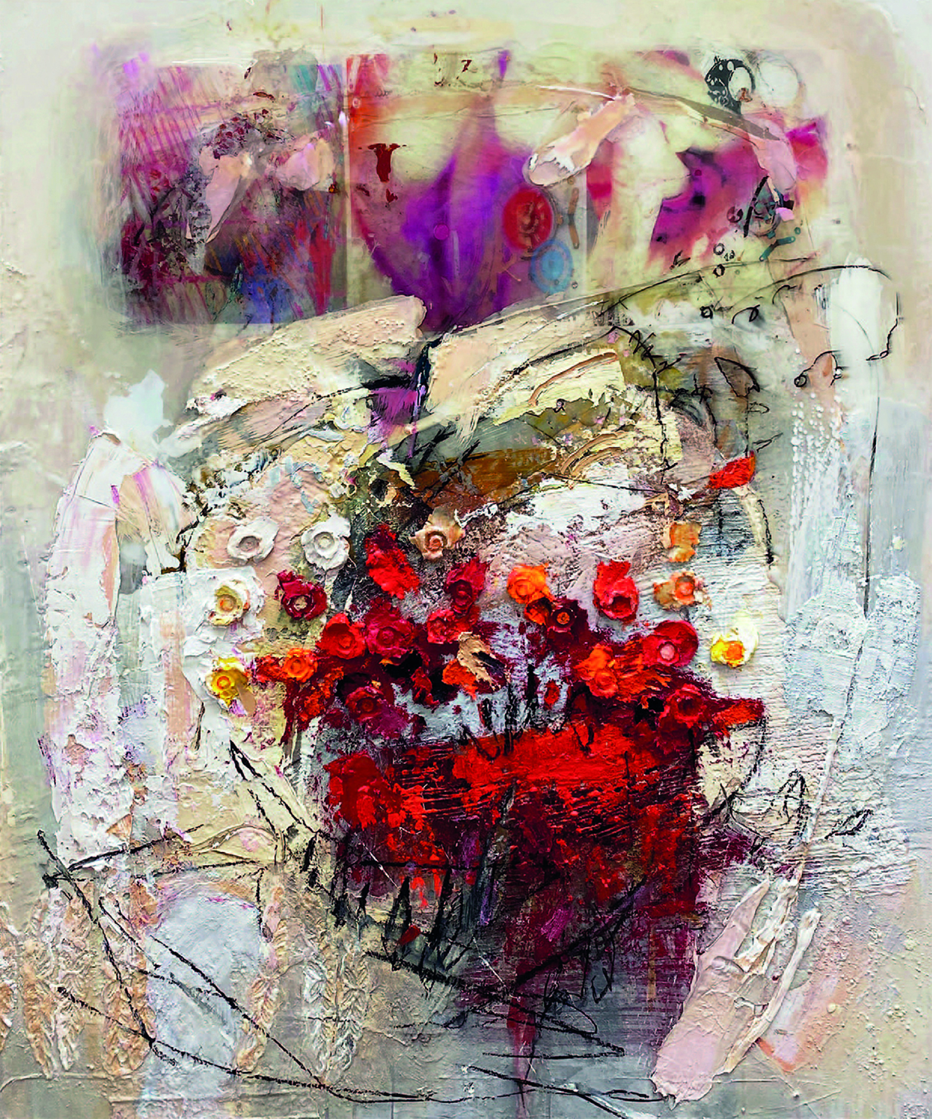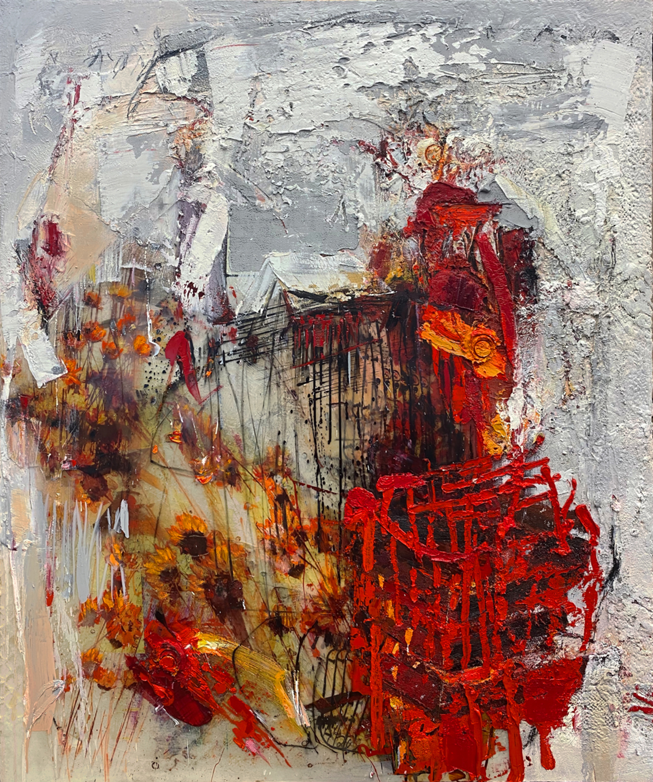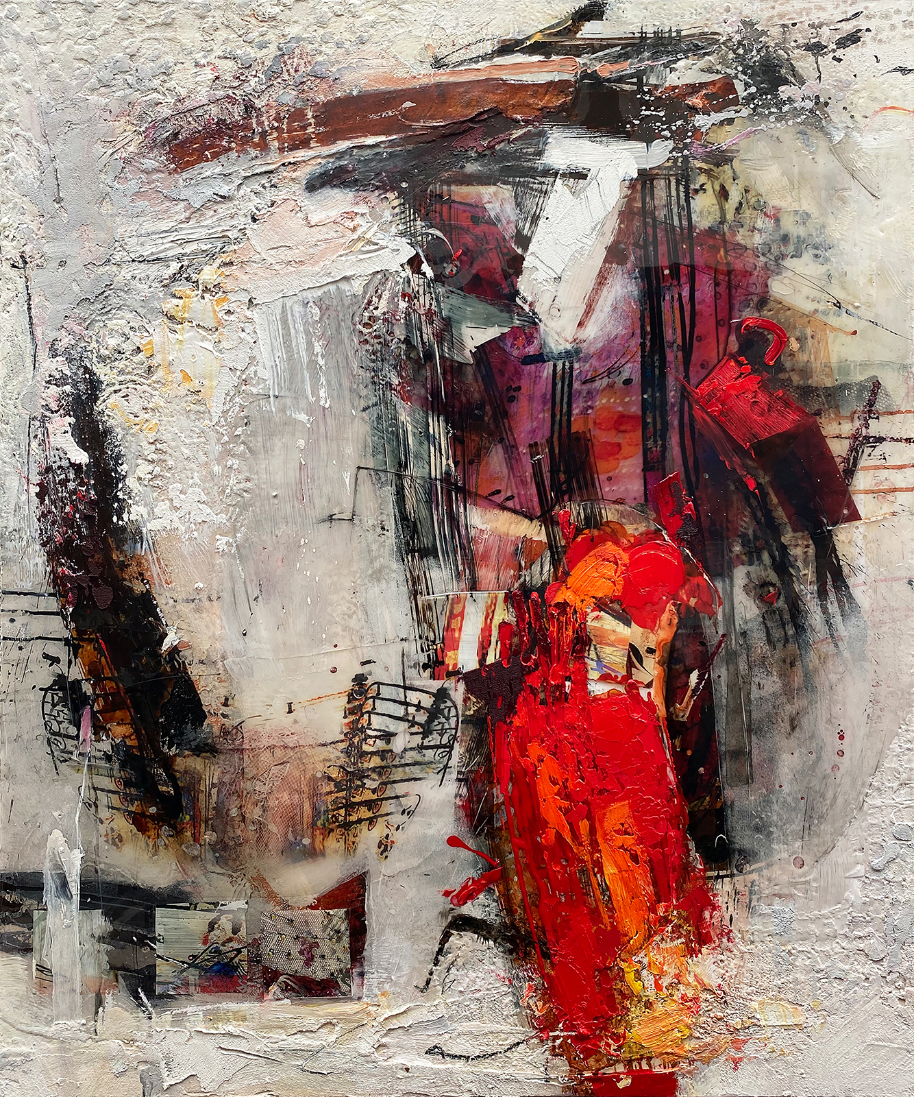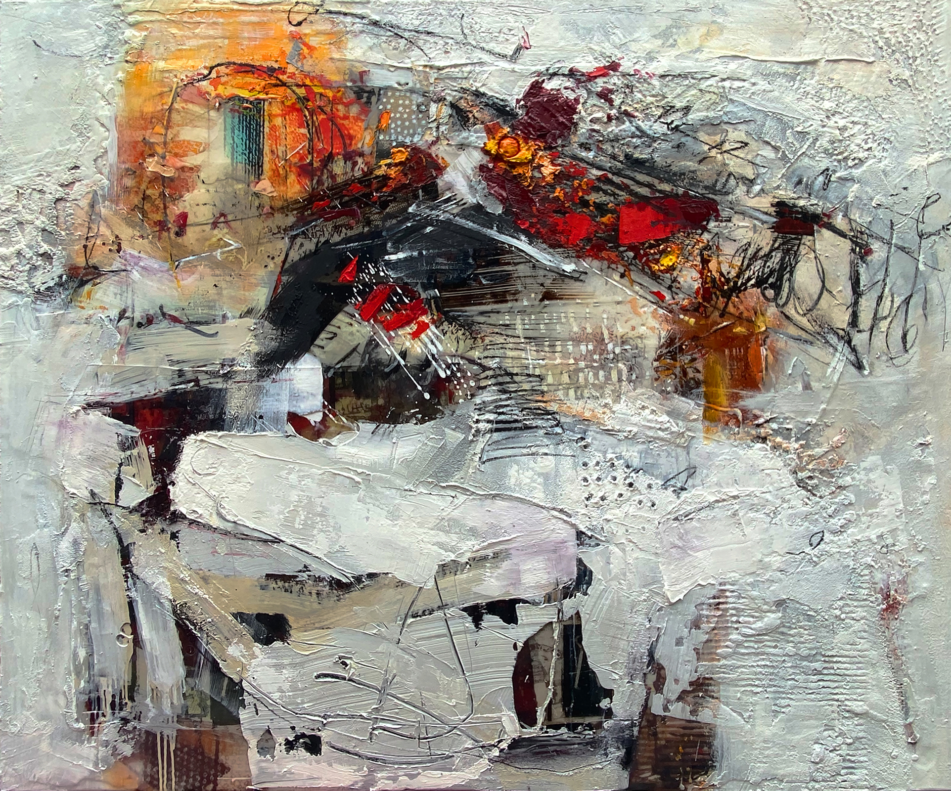 Collage Mischtechnik, Harz Öl auf Leinwand